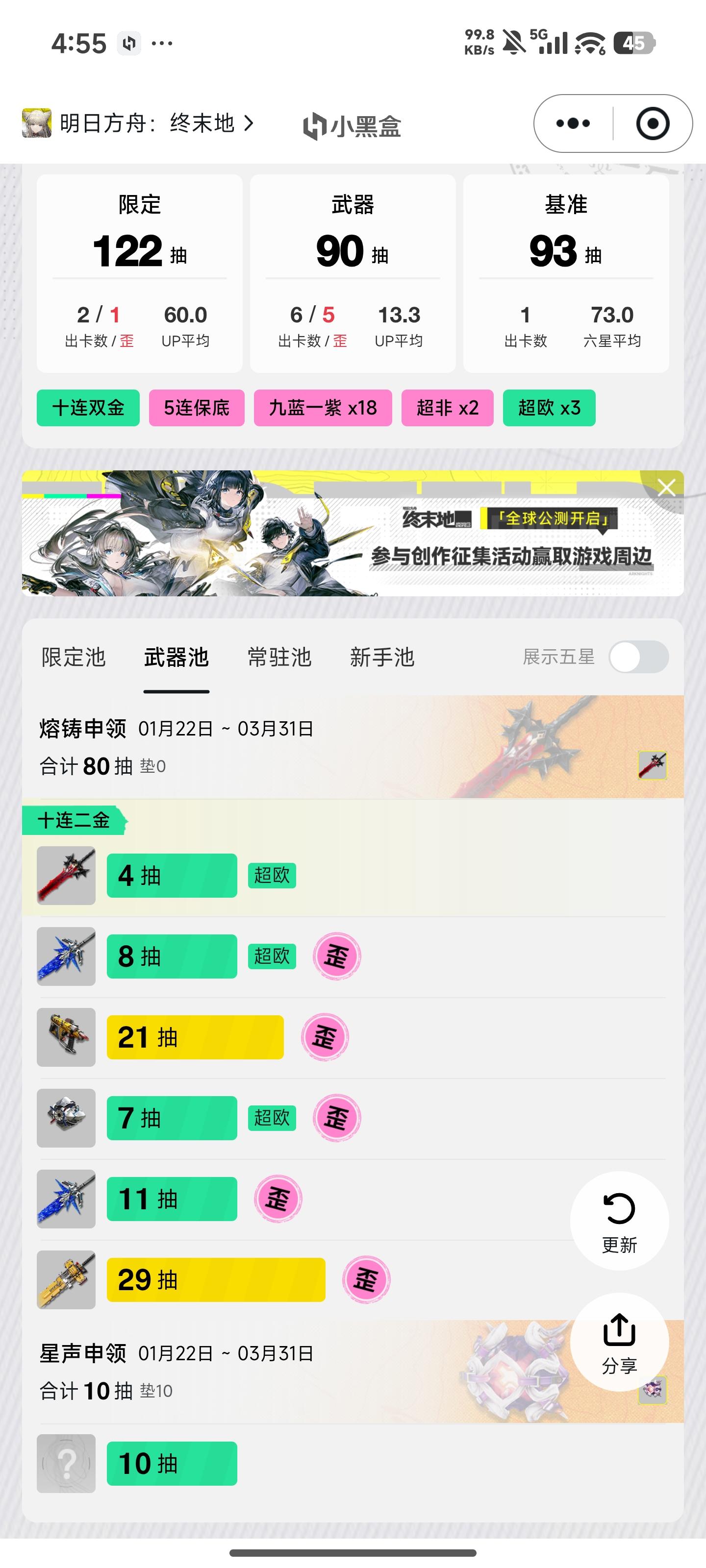 每天都刷,一次都不给,全是紫。欧皇们,快来炫耀一下吧!