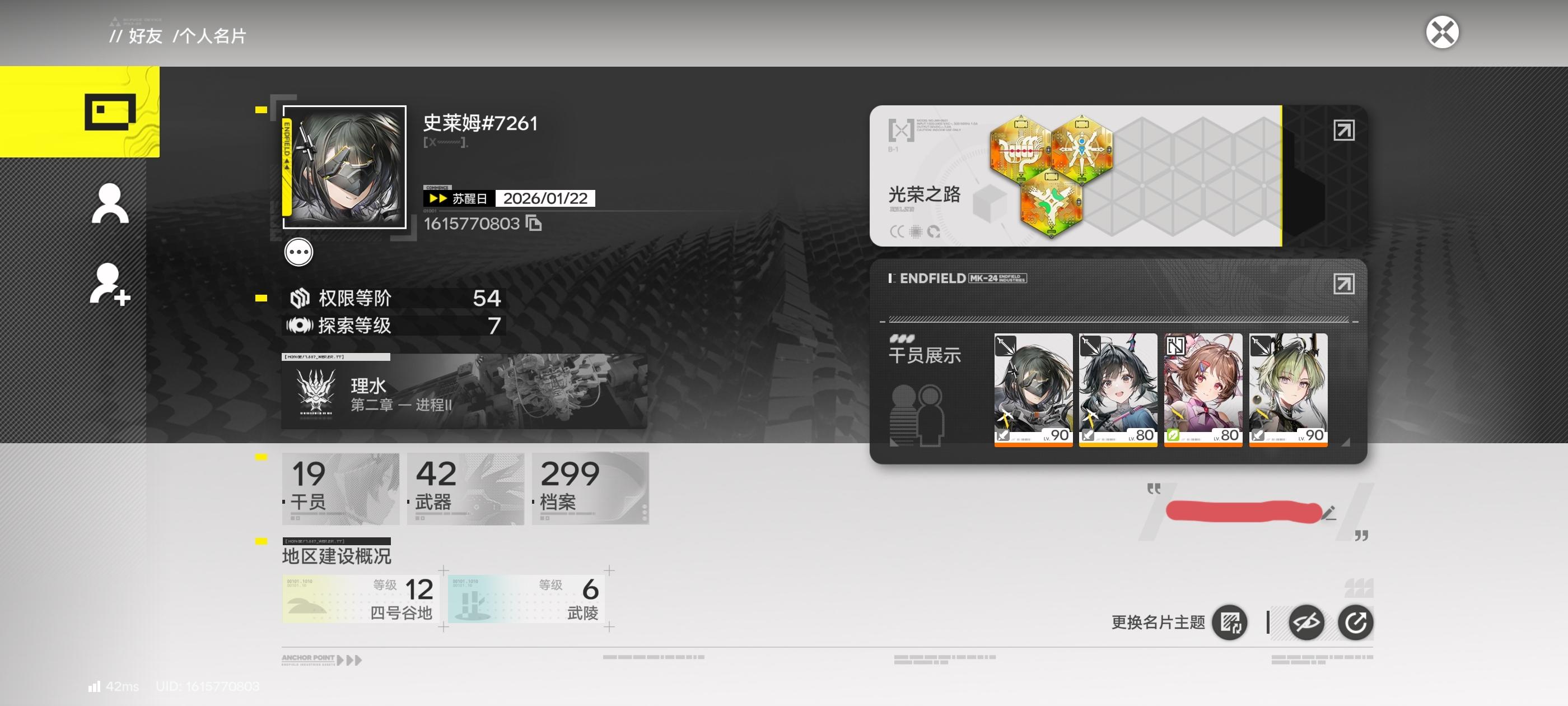一. 42的充能套为四散件终结技充能,例如落潮轻甲,长息护手,纾难印章*2。刚需专武。二. 骑士精神和布道自由小羊的回血无法触发。(但小羊马上送专武了,伟大!)三. 骏卫热熔切割>不知归,主要原因是对整个队伍提升大。不知归更倾向于骏卫主控位。四. 小陈的钢铁余音满潜完爆扶摇。且扶摇暴击率小陈吃不到,词条三的失衡日常基本没用,打boss也就吃个一次。五. 余烬主控位用破碎君王。生存为就剩下的
