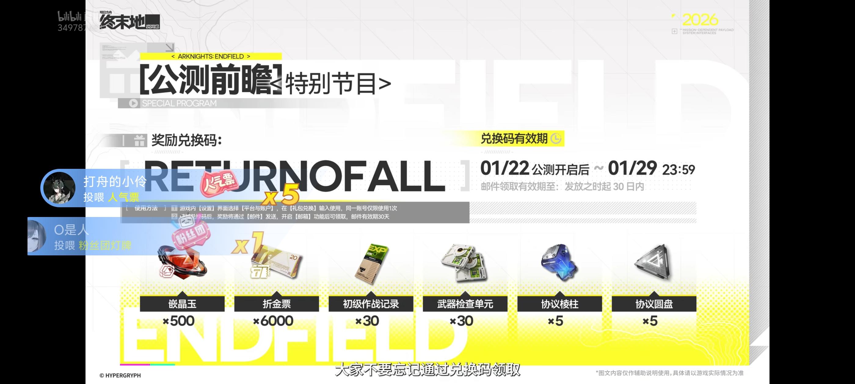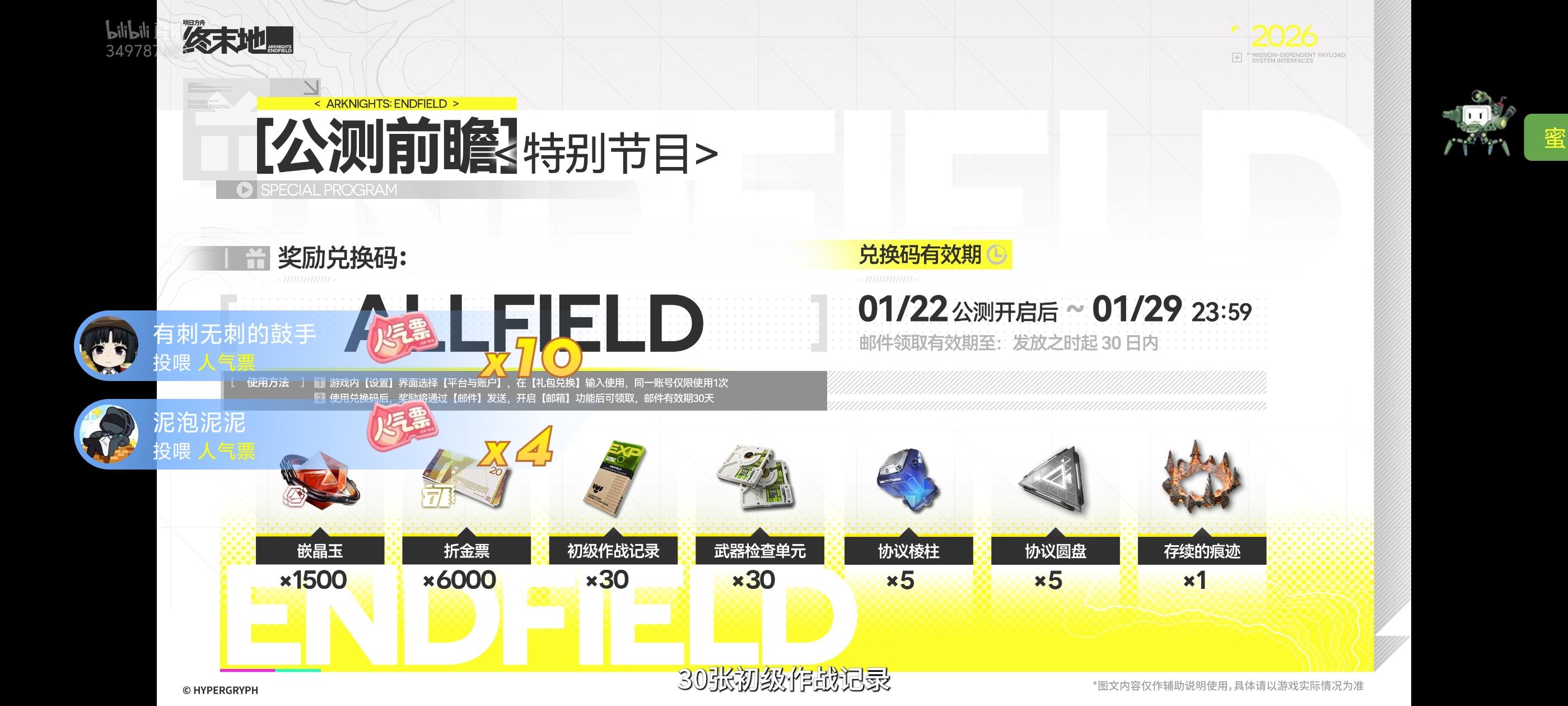 终末地携手@LAWSON罗森 ,邀管理员一同踏上新程。 更多活动详情,请关注罗森官方自媒体账号。 ———————————— 《明日方舟:终末地》全球公测将于1月22日正式开启! ▼//前往官网预约:https://endfield.hypergryph.com/ 《明日方舟:终末地》全平台预约进行中。全球3500万预约里程碑奖励及全球官方社媒关注数奖励已全部解锁,公测开启后可领取5星干员【昼雪】