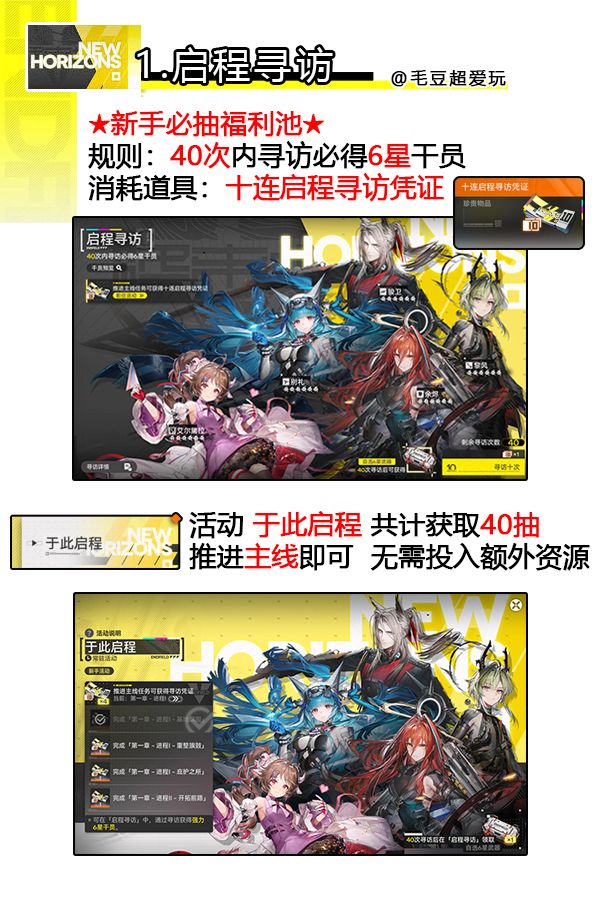 这里是毛豆,本期为大家带来的是《明日方舟:终末地》的卡池详解以及抽取建议。启程寻访-P2熔火灼痕-P3基础寻访-P4武库申领-P5省流敲重点:1各卡池的抽卡道具不同,已有的活动奖励票可直接使用。2萌新推主线优先拿一位常驻6星角色。3资源重点投入限时UP池,本期〈莱万汀/伊冯/洁尔佩塔〉仅可在熔火灼痕卡池获取。4注意限时的行火