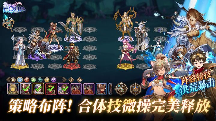 手动战斗开启,策略无敌!《云中幻想》全新版本即将上线,让我们来看看这次最重要的两个玩法更新。布阵系统的更新,从5格布阵转为25格布阵,让玩家有更多的布阵方式和获胜可能性,大大增强了布阵上的策略性。注意,你们也会遇到很多千奇百怪的敌方布阵方式噢,想办法战胜他们吧! 全新战斗模式,和数值碾压说拜拜!修改了核心战斗模式,过去英雄都是用自己的怒气释放必杀技,新版本所有的英雄共用同一套怒气值和法力值