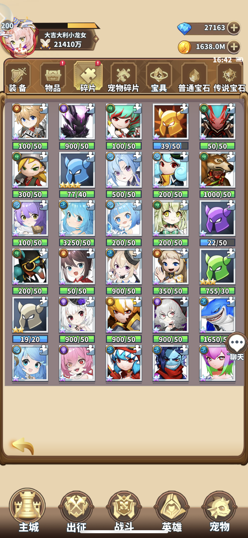 先亮图。 因为看了不少大佬的攻略,走的弯路较少,不过还是踩了不少坑。分享一下微氪党过第一章的经验吧。 1.英雄阵容和星级。 新手目前必暗战开局,这个号开局600抽不算欧,只有一个十二星的暗战,相信你的开局不会比我差多少,不过不要紧,还有不少白嫖好用的英雄,阵容组成由暗战(主c),暗魔/光锤(我这个区刚好赶上光锤up),三奶辅助:护士(必要),多娜(必要)+海神/火奶,辅助除了多娜最多升到九星,因