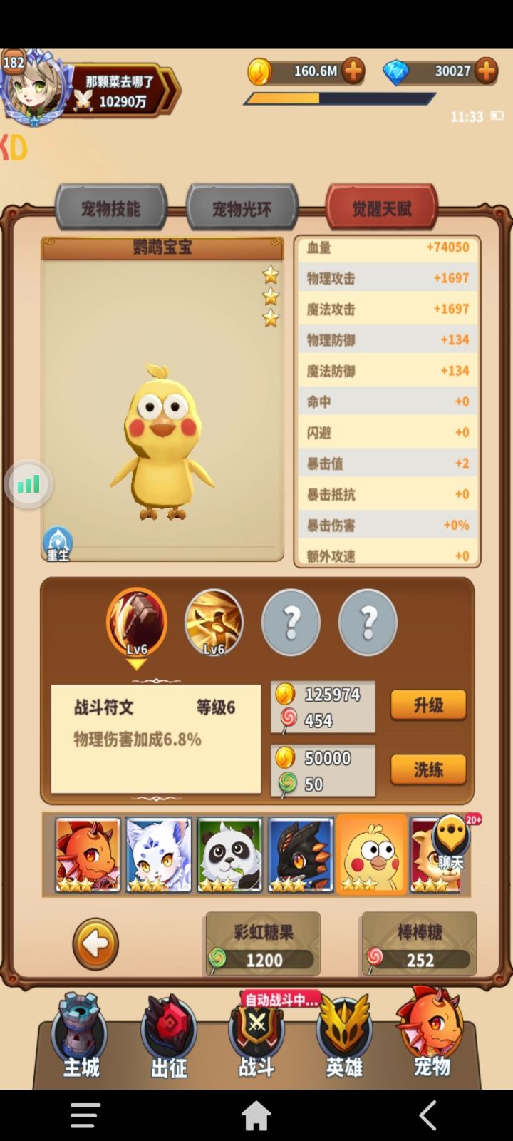 因游戏最近更新了宠物系统,大家应该都还处于迷茫阶段,经过诸多大佬的测试,以及自己推图的测试经过对比,以及阵容的搭配,目前得出鹦鹉宝宝,人称小陈杰,版本之子至于技能的选择,我推荐,物理伤害加成,技能伤害加成(或者法术伤害加成),物理减伤,法术减伤。基本就这几个特质通用而且强力,因为减伤满级20级25.6%的减伤,伤害增加18%左右,很强力关于第5章节攻略经过几万道具,几万砖石的转换洗练英