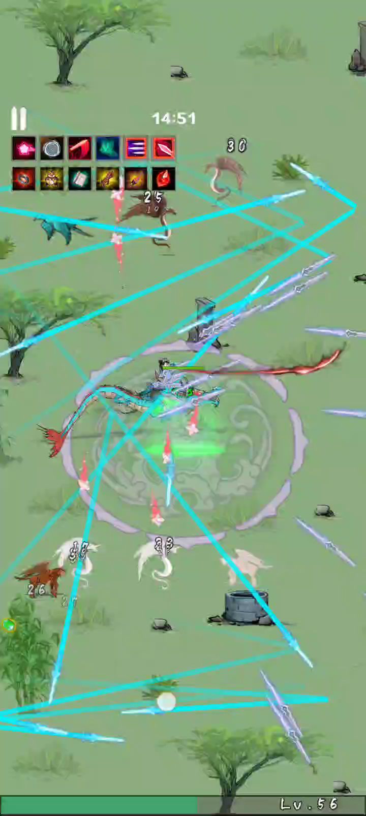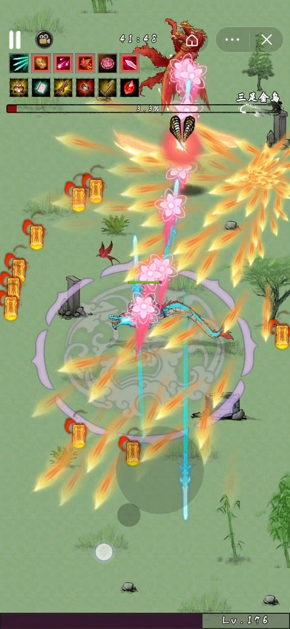 我和你差不多。到我哒错了。用的八荒。秒小怪很爽。那知道打它没用。还好有大雷。跑路就行(●°u°●) 」