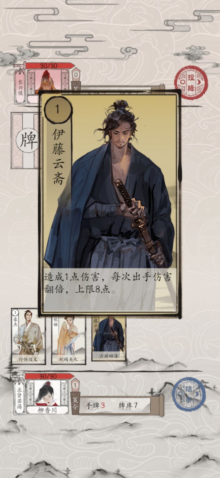 根据玩家反馈,现做出如下更改,23点更新,届时会出现断线情况,希望玩家们提前结束战斗,更新后重登即可。【江湖阵营】1、曲乘风削弱为:0费,消耗3点气血,造成5点伤害。【武林阵营】1、周剑林增强为:策略消耗降为2点,消耗所有真气,造成等量真伤。2、向清风增强为:策略消耗降为2点,下回合对方攻击时,先手攻击3点真伤。3、陈逸云增强为:策略消耗将为2点,下回合对方攻击时,先手获得3点真气。4