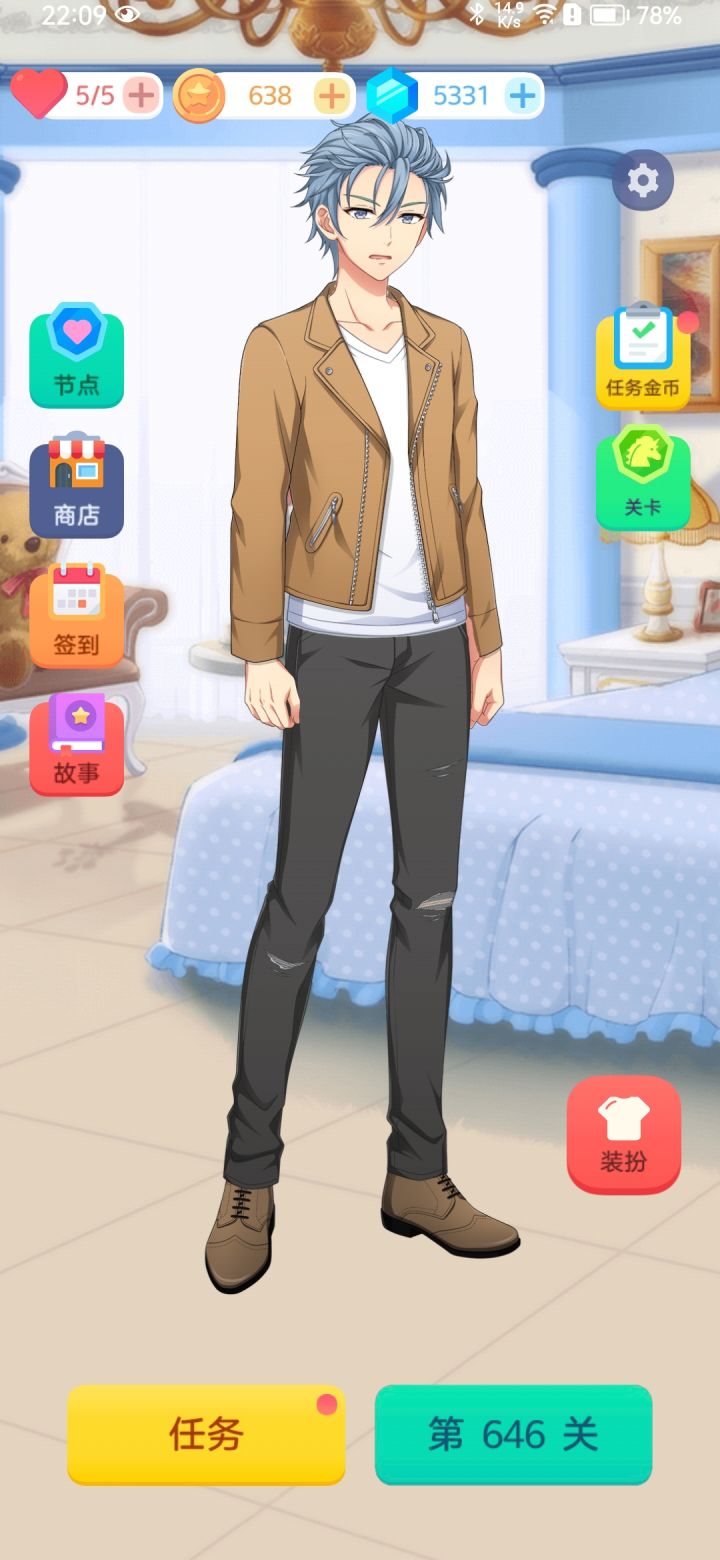 总算打完了,确实简单易上手。总的来说这个游戏打前十章到前十五章就足够了,最好看的装扮基本在前边,后期装扮太贵、并且后面男性装扮有点土,不太好看。