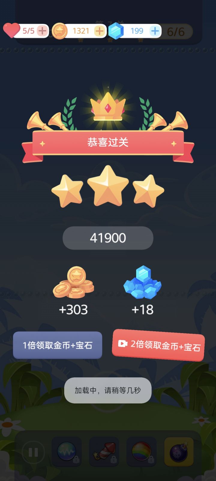 然后其实问题只在于钻石太多金币太少,后期道具用不完,钻石除了拿来解锁第三件衣服以外没有别的用处,卡关卡金币的时候非常想用那好几千钻石换成金币啊。