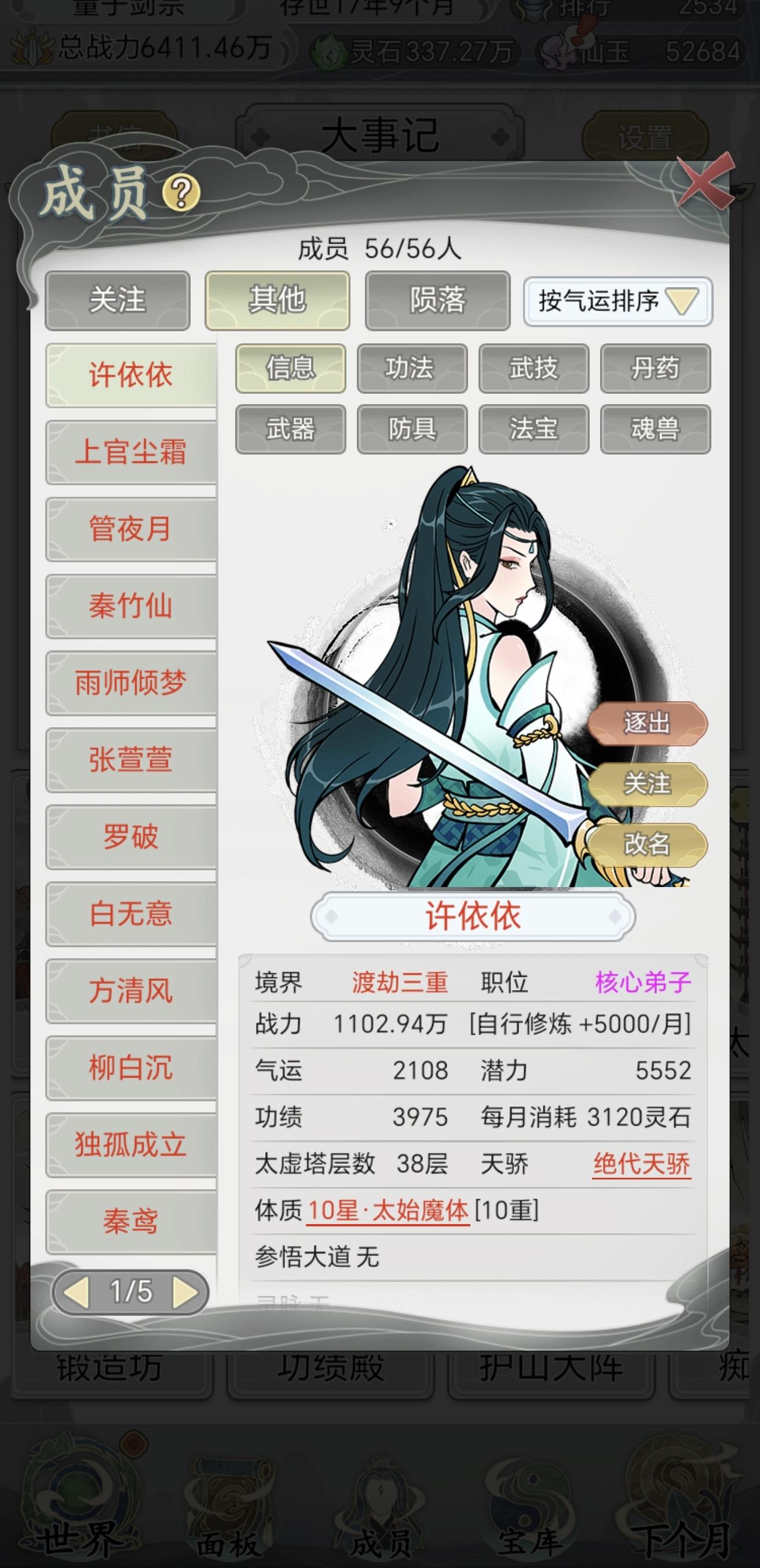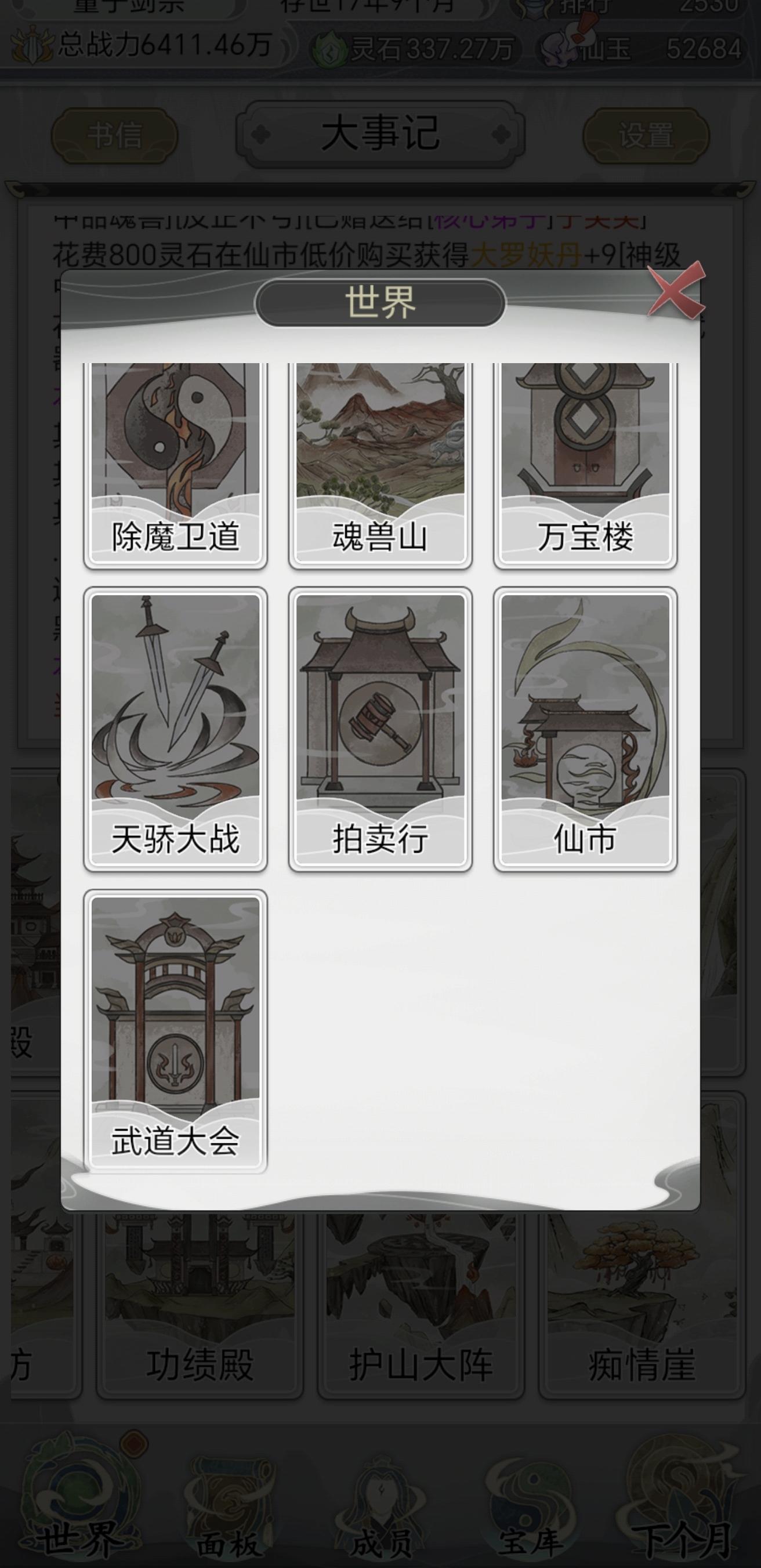 4.到中期以弄一个功法殿自动挑选多词条功法什么的,这样起码中后期能把它当挂机游戏玩一玩,看一看宗门几年之后发展成什么样了