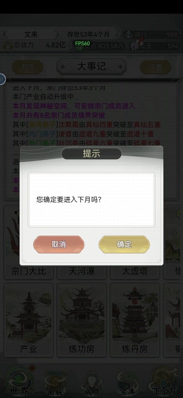 首先前期游戏刚开始尽量选那些战力词条的角色能附带灵石生产加成更好,然后游戏到了中期灵石会疯狂增加,当你看到你的收入跟支出马上快成为正比的时候,一定要招收一些带灵石生产的弟子,然后就是刷各种任务这边推荐除魔卫道,然后等到后面养出了一尊大帝,中期一定要好好发育能做的任务全做,把能拿的武功秘籍全拿了,后期就狂点下一个月就行了大帝遍地走哈哈
