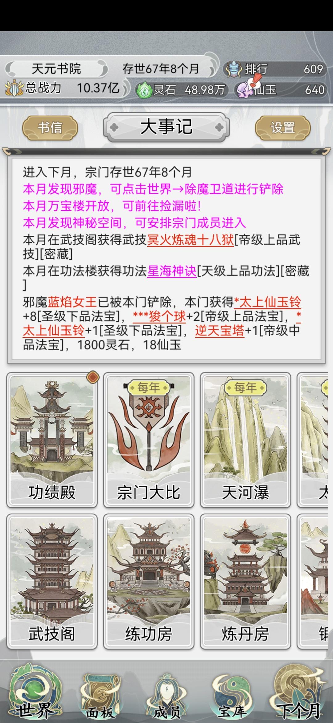 一直点下个月其他啥都不点,等着自然增长战力就行了,能遇到的宗门都是三品四品的,没啥压力#不一样的修仙宗门2