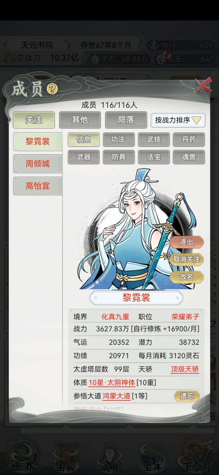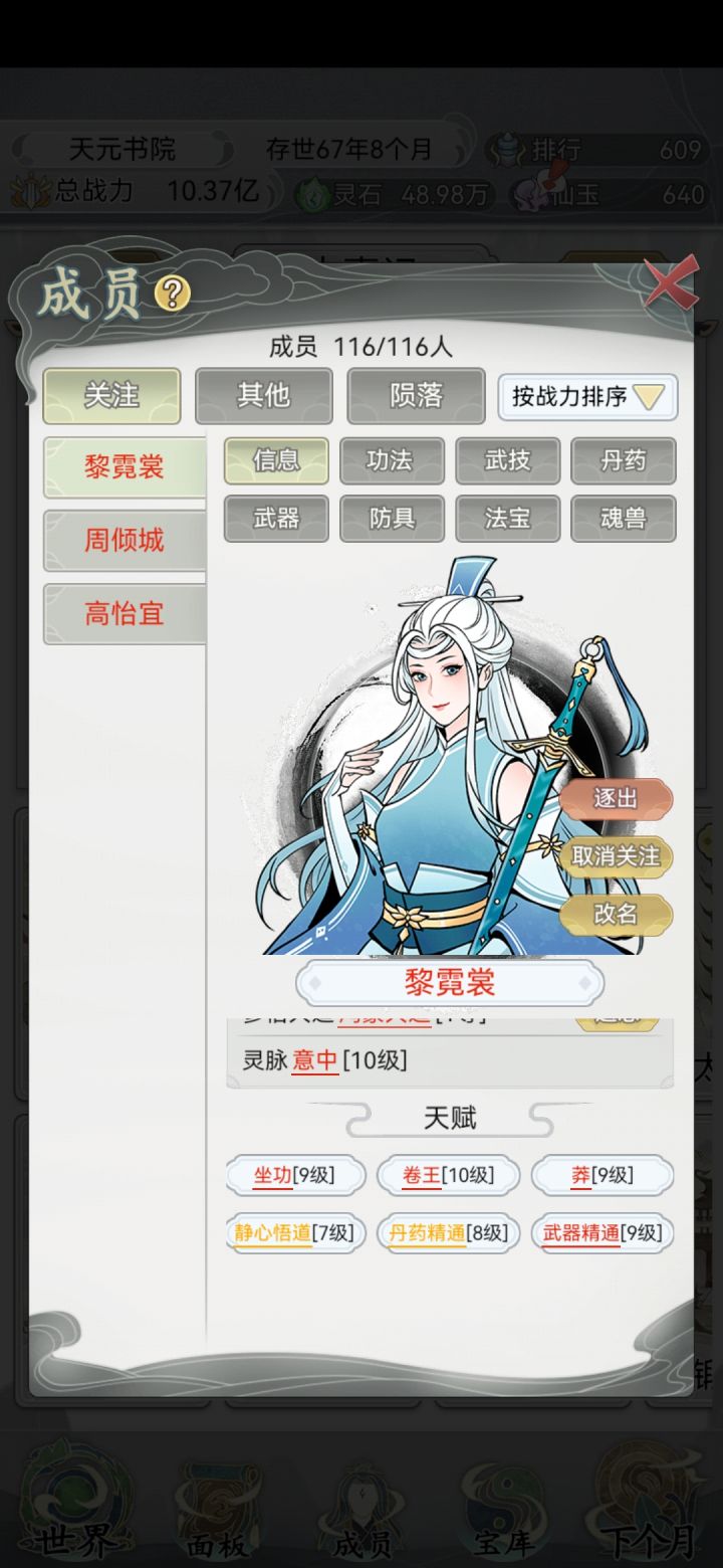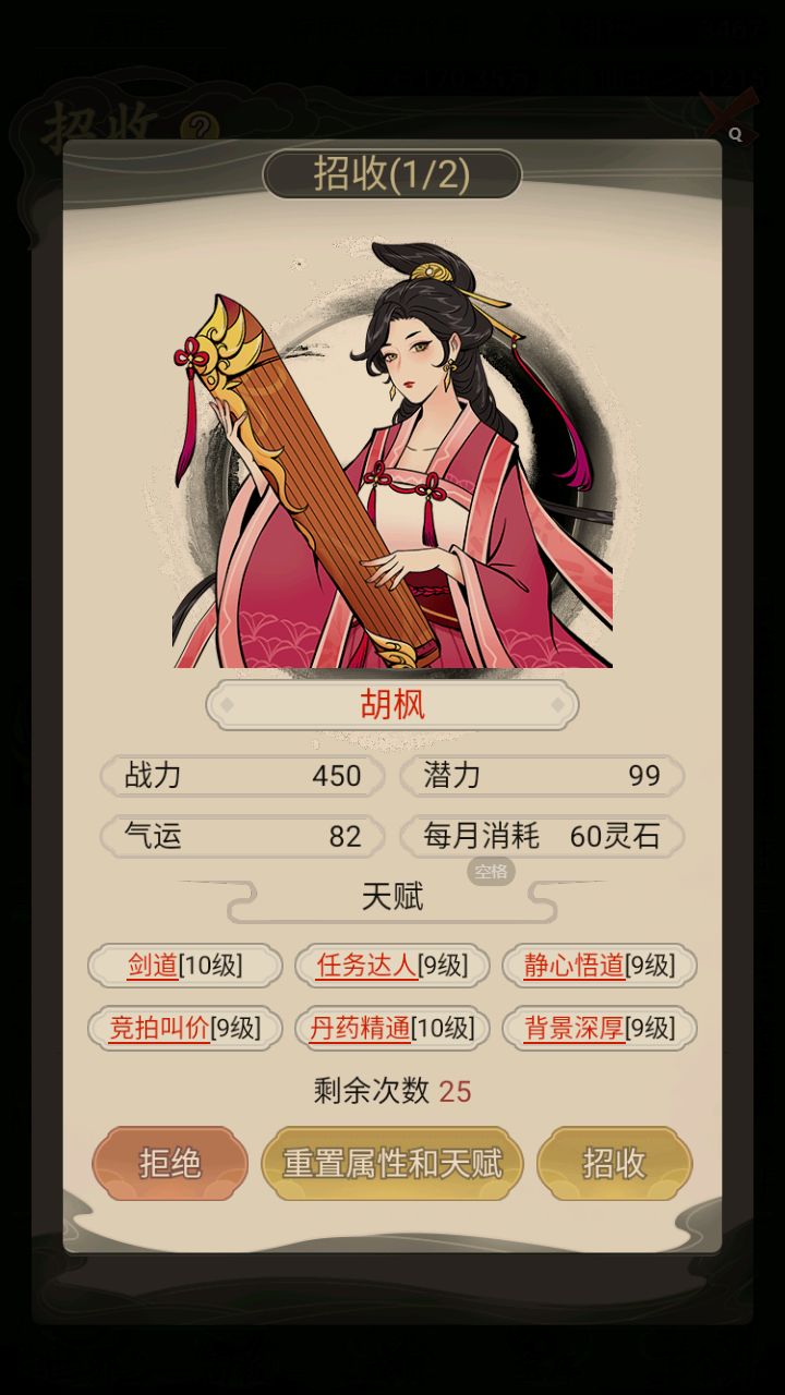 本来刷个红名已经很累了,自己看到有点用的红名都收入门下,30个小时培养成最强战力。结果无聊来论坛看看什么天赋最牛逼,原来 卷+莽+痴情 才是最强词条,本来刷红名就很累了,现在每天的时间都在看广告凹点,把将近40个弟子重新筛选了遍,逐出宗门20来个现在变成15人重新凹点红名重新培养刷到封面这种6红的,但是没有一个关键天赋的,都入不了法眼了这游戏上一次更新已经是24年年初了,真的强烈建议这游戏还
