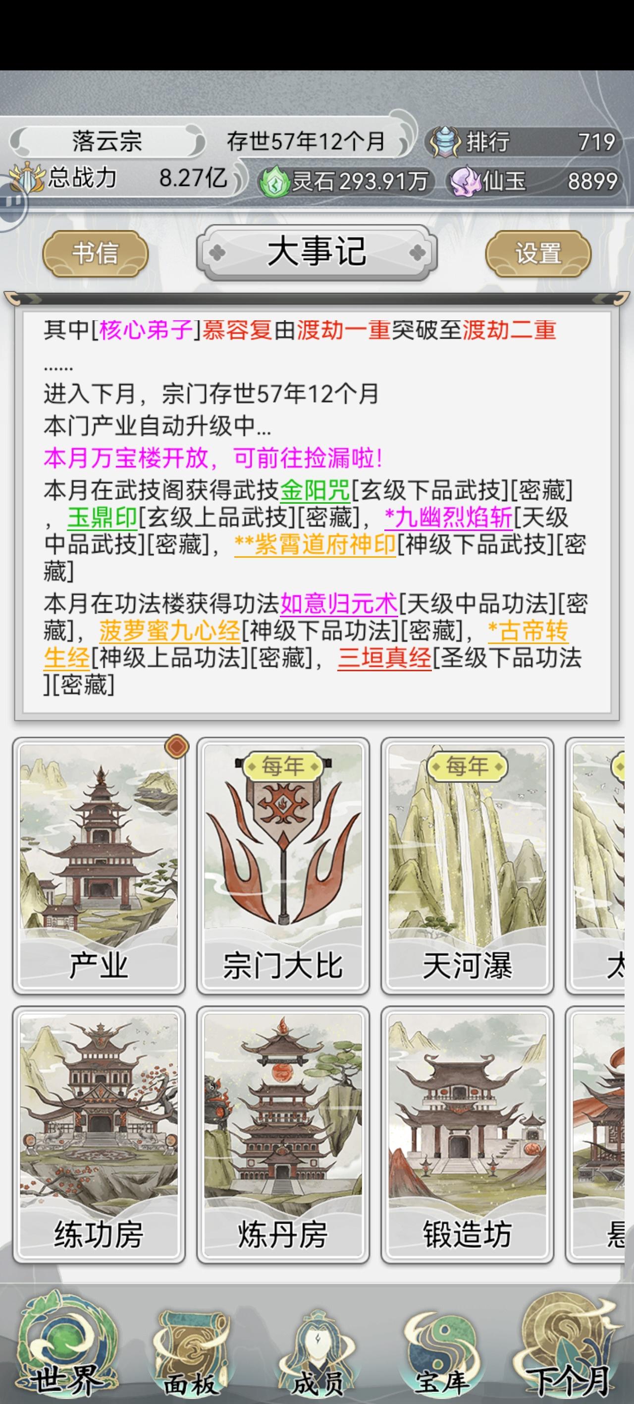 一直点下个月其他啥都不点,等着自然增长战力就行了,能遇到的宗门都是三品四品的,没啥压力#不一样的修仙宗门2
