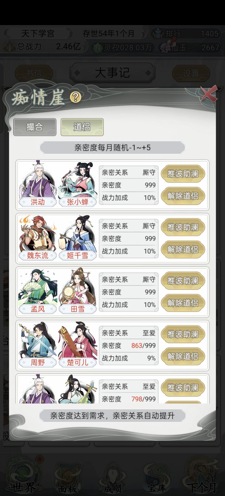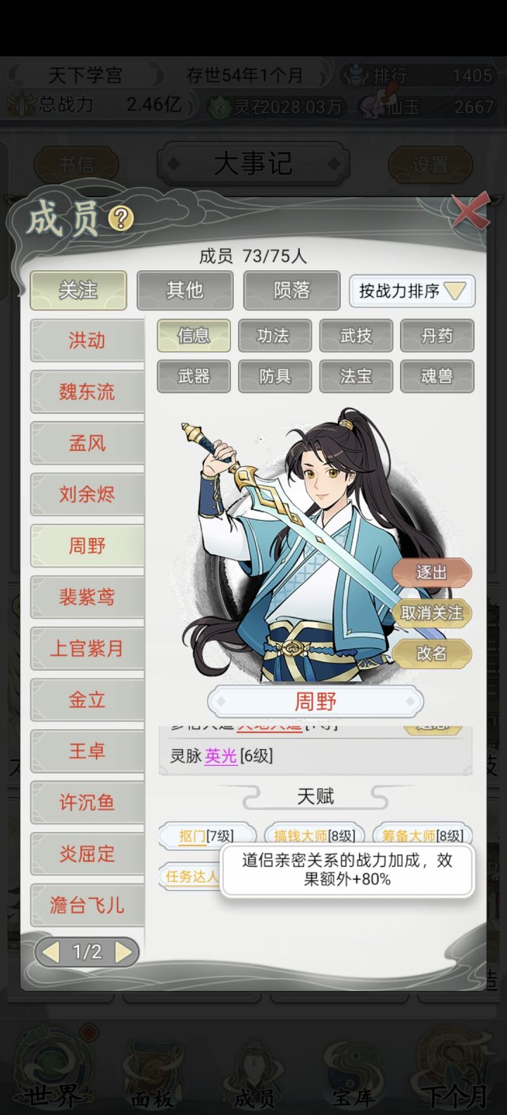 玩了几天刷了120多名弟子,卷王痴情莽三词条弟子20几个,其余都是卷王痴情双带不低于9