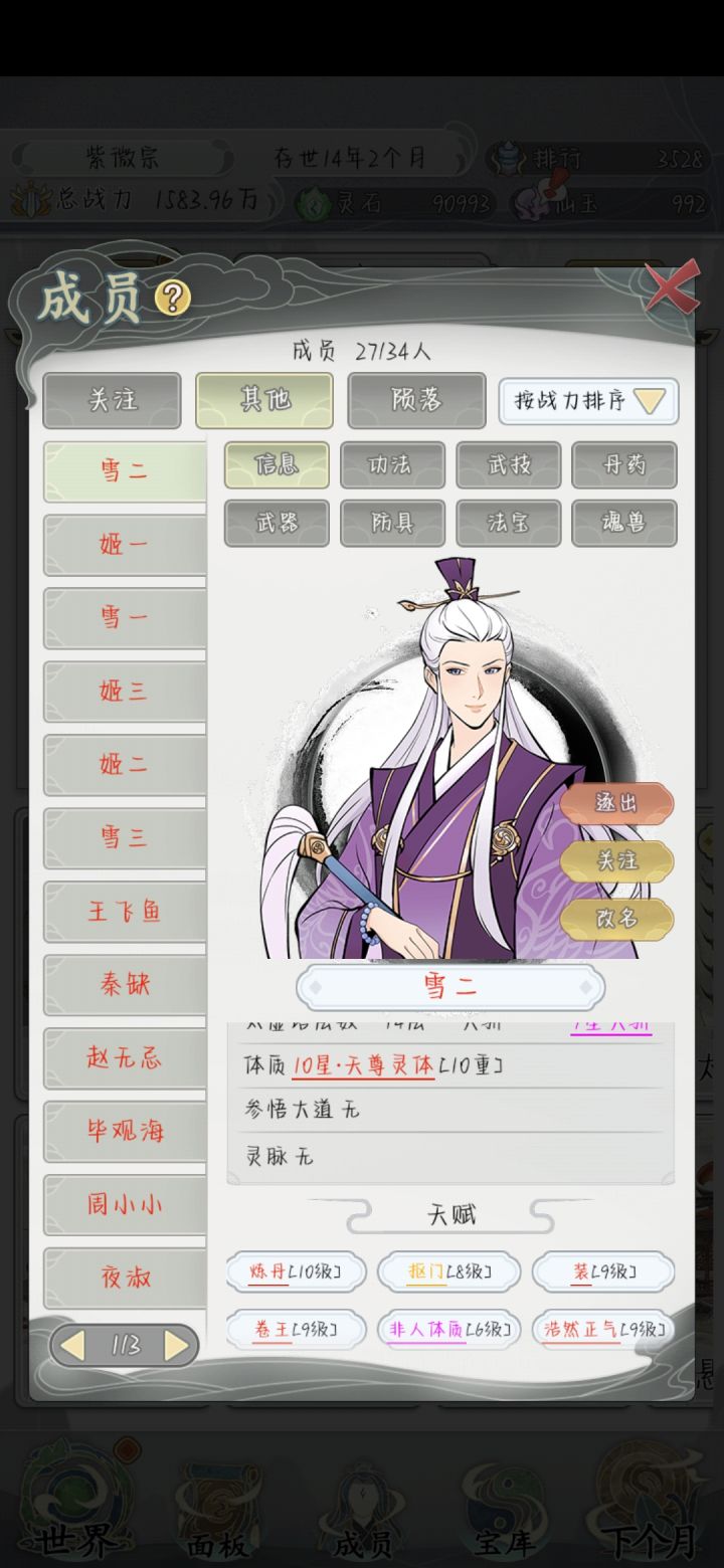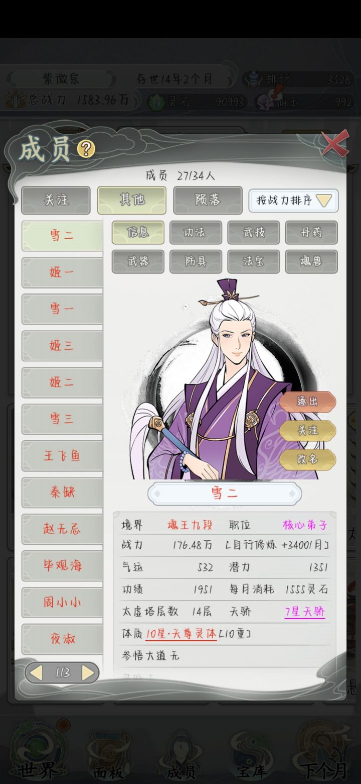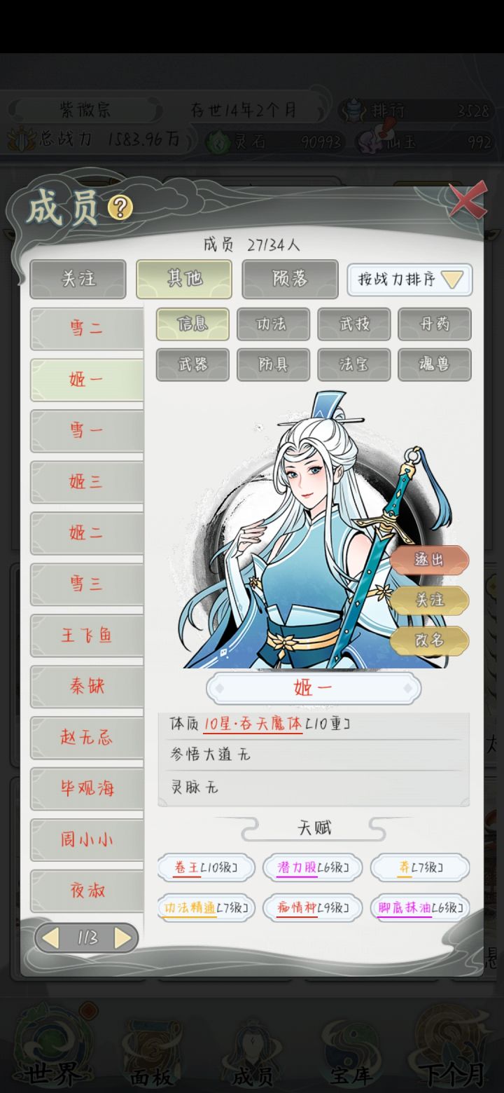 一直点下个月其他啥都不点,等着自然增长战力就行了,能遇到的宗门都是三品四品的,没啥压力#不一样的修仙宗门2