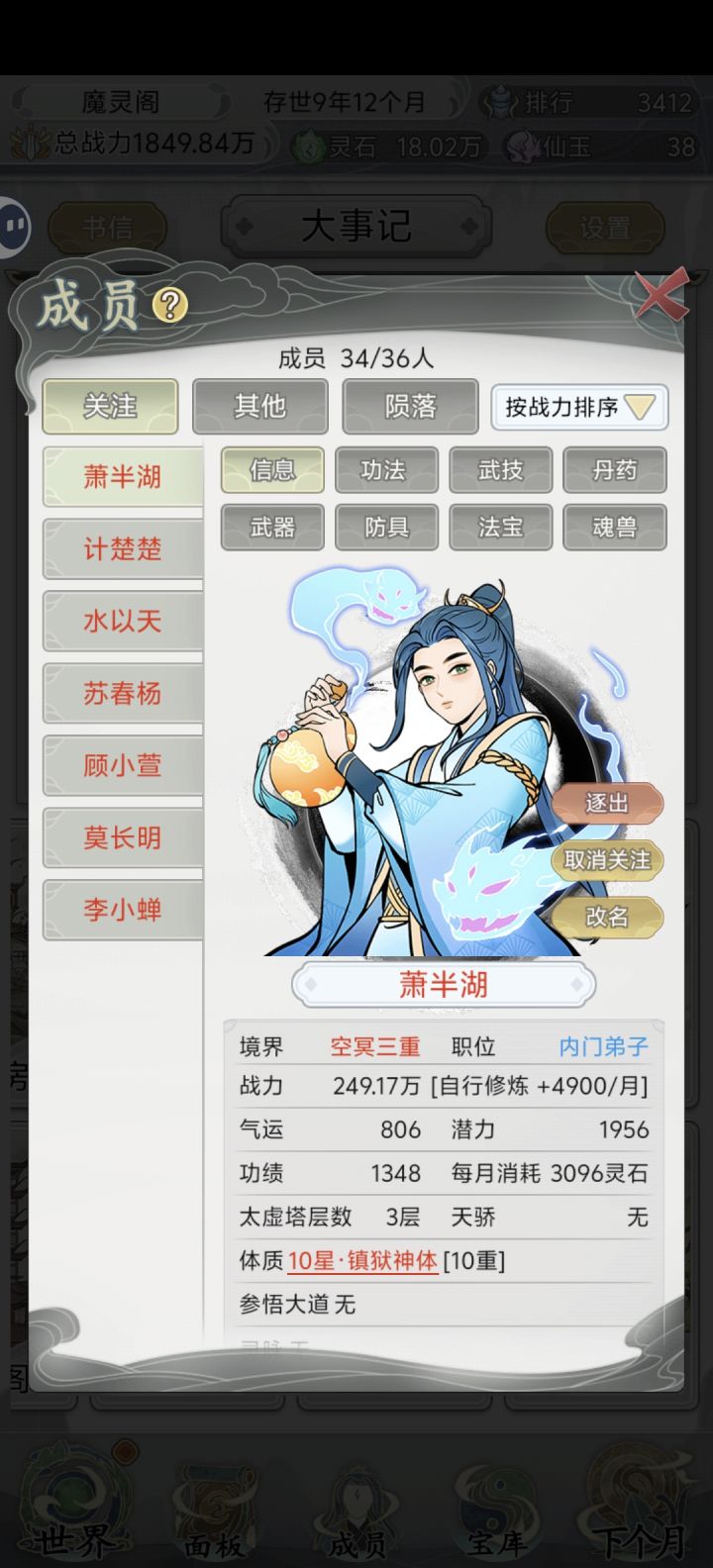 没有刷很多次,这已经是我天赋最好的一个了,所以当我刷到的时候,就所有资源都倾向给她,连我在仙市买的隐藏武器都给他用了,就是升职太慢了,没办法#不一样的修仙宗门2攻略 #游戏日常