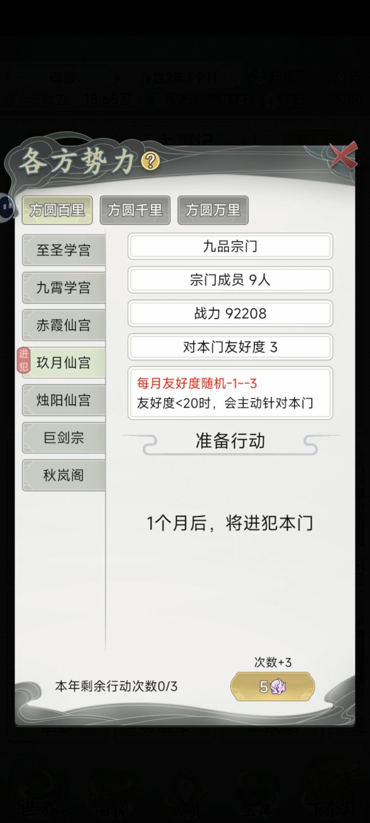 一直点下个月其他啥都不点,等着自然增长战力就行了,能遇到的宗门都是三品四品的,没啥压力#不一样的修仙宗门2