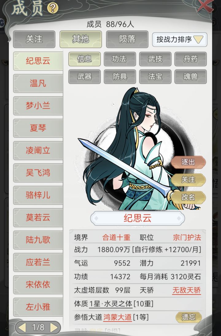 这个游戏确实好玩,但是太浪费时间了,一直像机器一样刷个不停,所以下决心退坑了,以此帖记录我玩了22个小时的存档#不一样的修仙宗门2