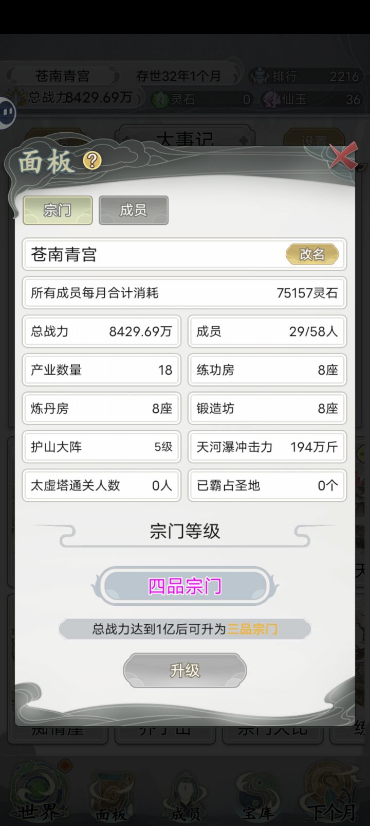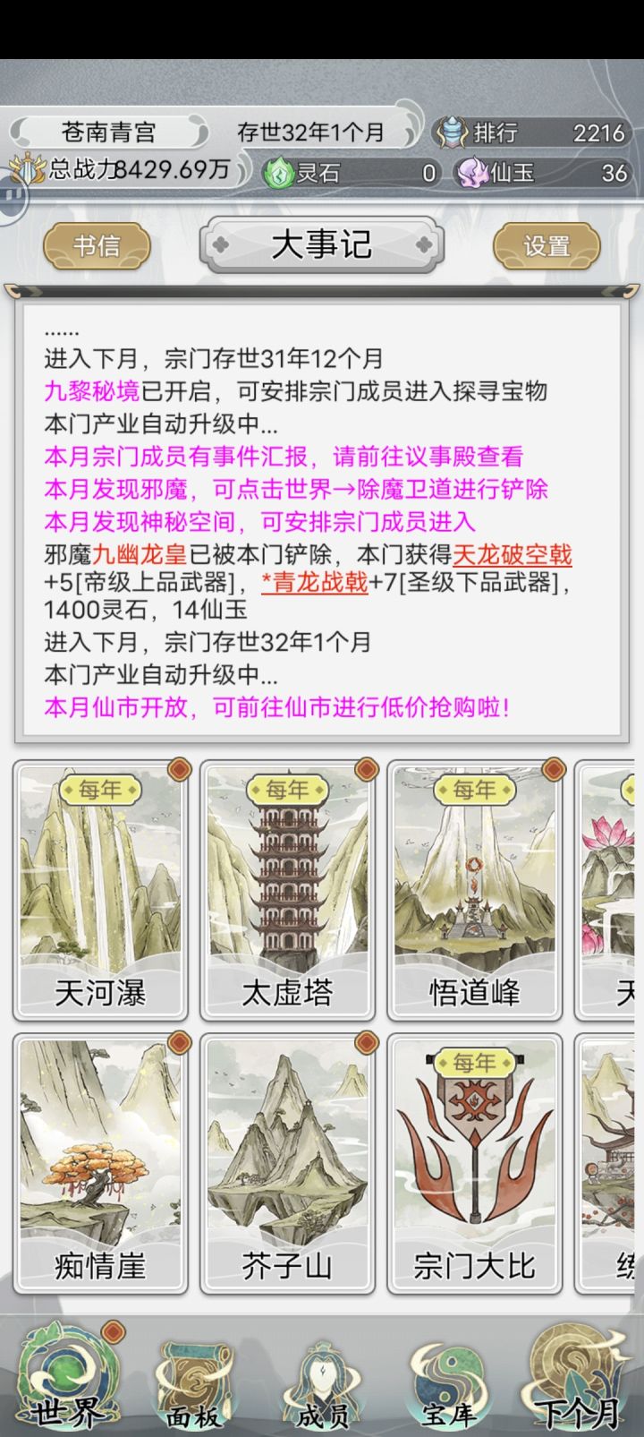 一直点下个月其他啥都不点,等着自然增长战力就行了,能遇到的宗门都是三品四品的,没啥压力#不一样的修仙宗门2