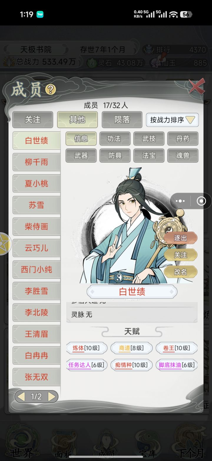 招几个核心弟子,其他弟子全弄产业加成的天赋。