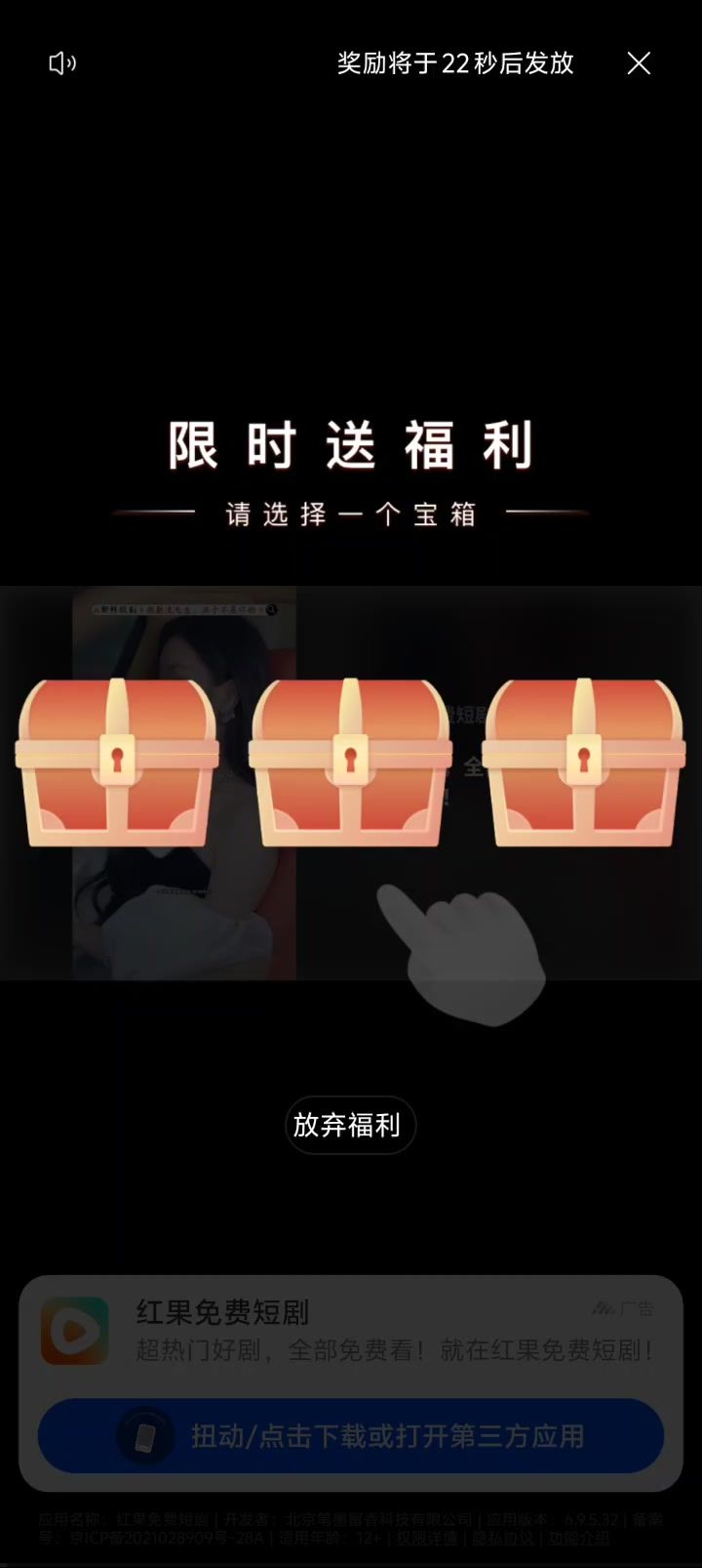 不能因为我没有点这个限时福利(实际上直接就是应用商店下载)就直接给我整个无效吧。 我第一次的时候还以为是我网络的问题,换了几次网 无线网 流量 好几个人的热点都试过了 结果都没用,那只能归于bug了,总不能是故意的对吧。 我觉得这个广告的bug非常需要改进#游戏bug