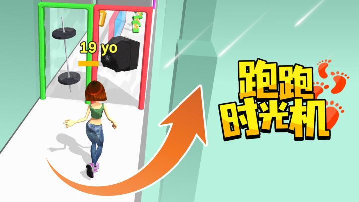 跑跑时光机是一款创新跑酷游戏,开局是个年轻人,一路上会有各种道具可拾取,你有可能越走越年轻,也有可能越走越衰老,全看你在路上的抉择,当你能在到达最大岁数上限前抵到终点,则能顺利通关并获得奖励,如果一路上的选择都不合理,则有可能在半路上便衰老失败。