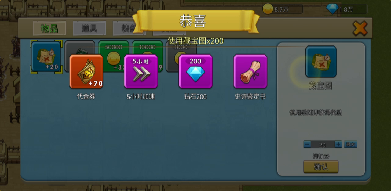 玩家ID:44F8QGWF5C 200藏宝图开出75