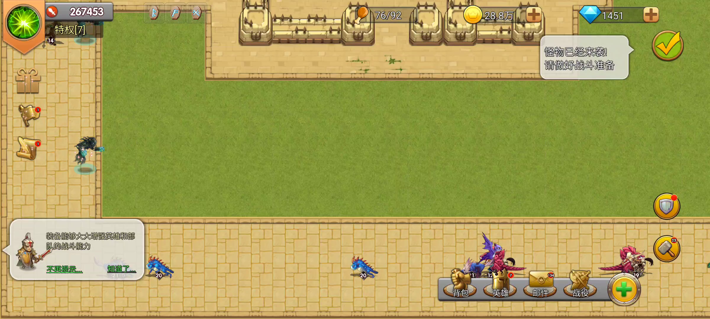 一、礼包码是:sorry321、tr1086。 优先进群,群里面还有每周密令和好评码,不定时各种活动,一大波代金券。 二、关于广告 广告有点长,而且点到可能会下载东西,但是,这个游戏可以不看广告玩,任何东西都可以慢慢积攒,反正也是单机游戏,没有竞争,不怕会掉队,完全凭借自己的喜好,这个很良心,代金券光每周密令也是不少的。 三、关于代金券 1.代金券该怎么花,长久玩钻石月卡必备其余看自身需求(英雄上场上限为3提前考虑好阵容思路,材料是十分稀少的,难以做到给养多个)。 2成长基金可以等高级再买。 3.特权等级升到5级/8级即可,5级开启战斗2倍速,8级每日领金色碎片。每升级到一个阶段的特权等级要记得领奖励,不要一次升太多级。 4.怎么得代金券?每20分钟左右会生成障碍,清除可得到藏宝图,使用藏宝图有平均40%+概率得到,每日任务,活动,兑换码等等也可以得到。 四、关于游戏,游戏本身是一个塔防游戏,城墙和建筑可以组成路径吸引怪物,注意,空怪是不会按照路径的,陆地上的怪物也是要受到攻击,拉取仇恨才会按照你设置的路径走,路径不能有死路,这样子怪物会乱打,甚至会卡墙,特别是飞行的英雄,如果在墙上攻击,吸引仇恨,有概率会让陆地野怪卡墙进来。 推荐刷怪的时候可以直接开十来波陆地的,近战与天空的分开刷,也可以进战略,刷新野怪群。 或者可以拿一个小地方出来,利用防御塔等区域刷怪如下图,这样子的。 新手可以优先养冰魔与兽王,冰魔需要智慧装减CD,前期基本秒杀,兽王可以来吸血装。 五、关于装备,高等级可以触发低等级的效果,比如智慧2可以触发智慧1的效果,所以你可以慢慢替换,换好的词条。前期的装备主要看鉴定,比如智慧,毁灭,这些,不太需要看数学,后期装备再慢慢肝属性。 六、关于开局,开局买特惠宝箱,换成兽王的,把特权拉到五,然后刷小怪,升级主城,优先升级主城,兵营啥的先不管,高级再来慢慢升级,箭塔,农场,城墙,酒馆这些升级一个,跟着主城等级就好。活动都随机的,因此可以刷个消费的活动比较好,前期大消费刚刚好。 七、兵种推荐弓箭兵,后面换小法师。刷怪 刷副本怪的时候推荐换成近战兵。