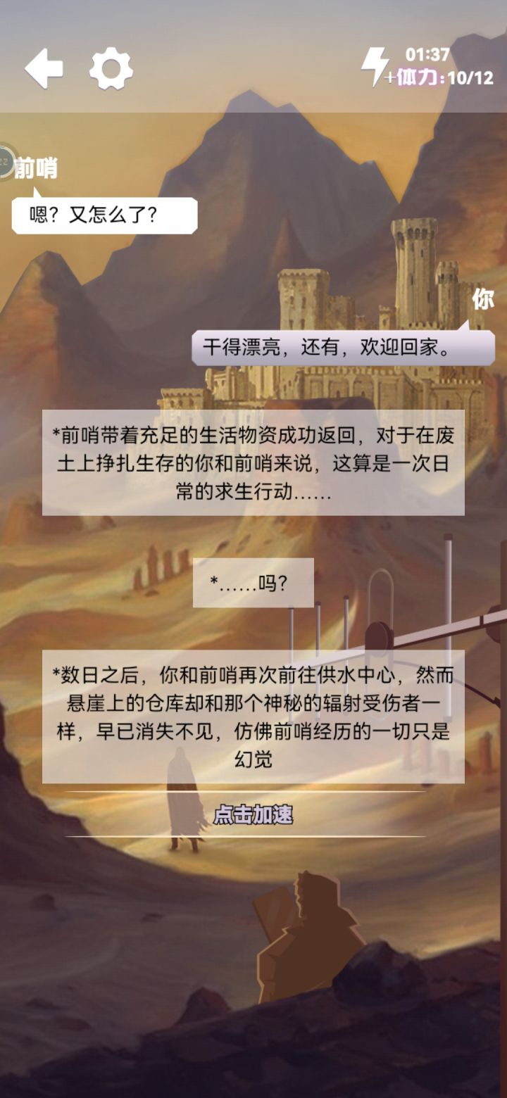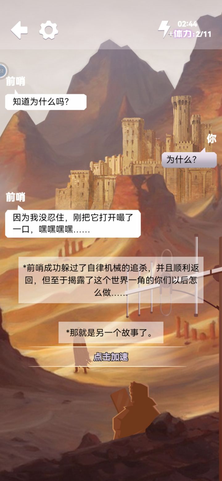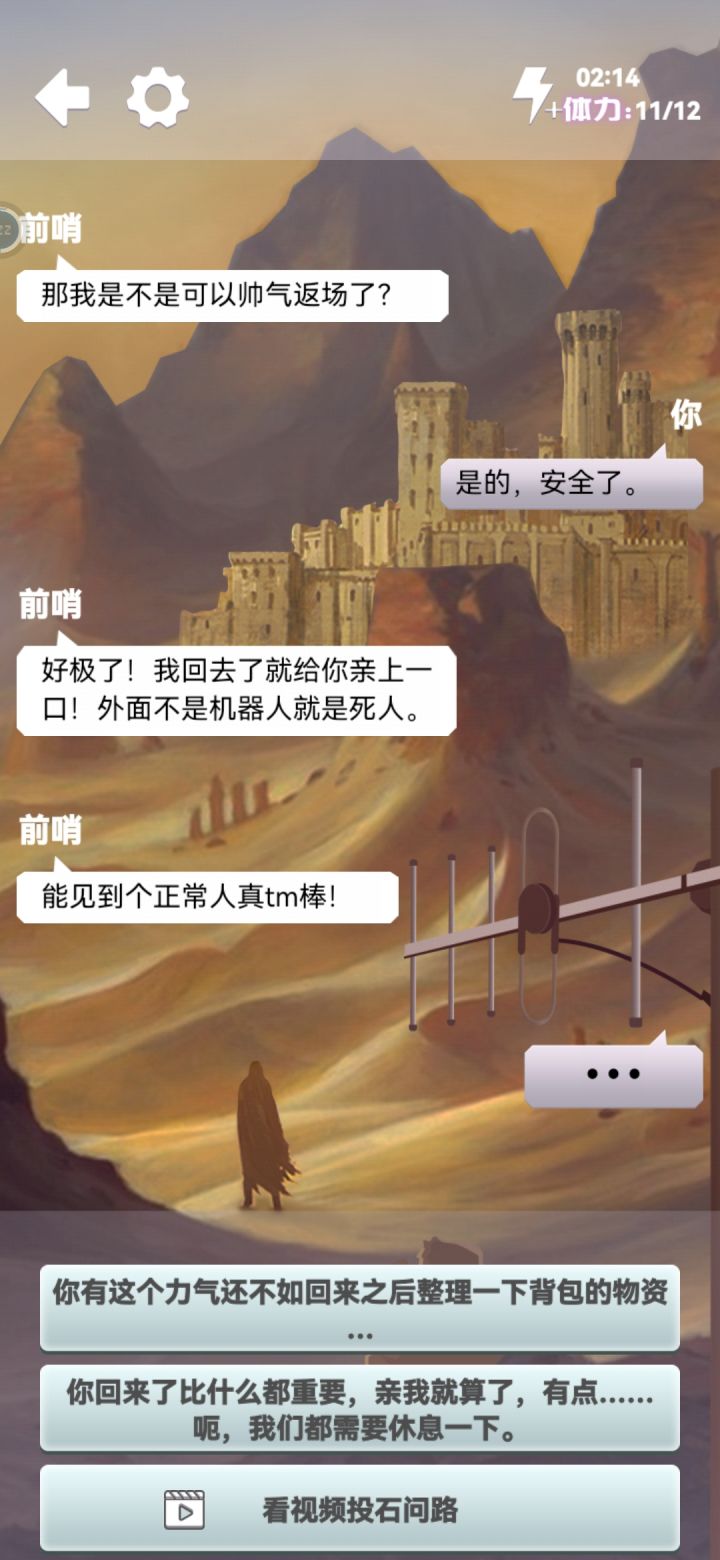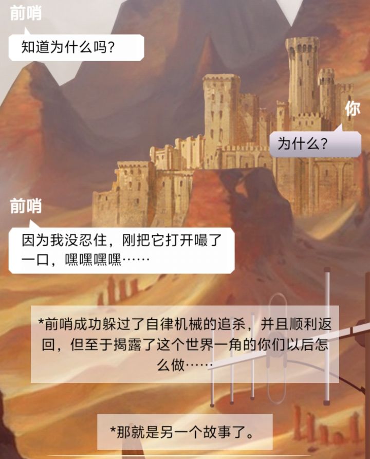 其他人那里的前哨好像都伤痕累累非常有故事,但我的前哨给我的感觉就是他普普通通地像郊游一样去探险我在后方收拾烂摊子,还有担心他有没有出事,他倒是没心没肺该吃吃该睡睡。有点长不大的小孩子的感觉。最后结局戛然而止,就很突然。