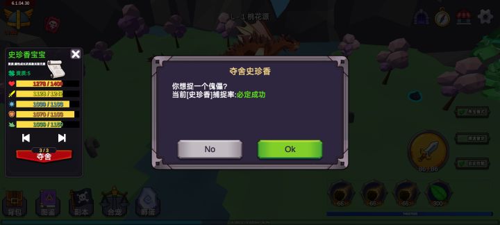 一、初始蜜蜂,亡灵,半兽人随便选一个二、一直普攻往下面打,到第五个图解锁寻宝模式,也就是和平抓宠模式,怪物名字后缀带有宝宝两个字冒蓝光的等级为1,其他野怪为当前地图等级且无自由属性点三、右上角指南针可以任意传送到已经通关的图,我们回第一关,不停的夺舍史珍香(看一次广告+3次),成功或者失败都可以加捕捉力四、左上角详情里面可以看到当前捕捉力,刷到Bi差不多30点的时候,夺舍后选择上一层,还剩的
