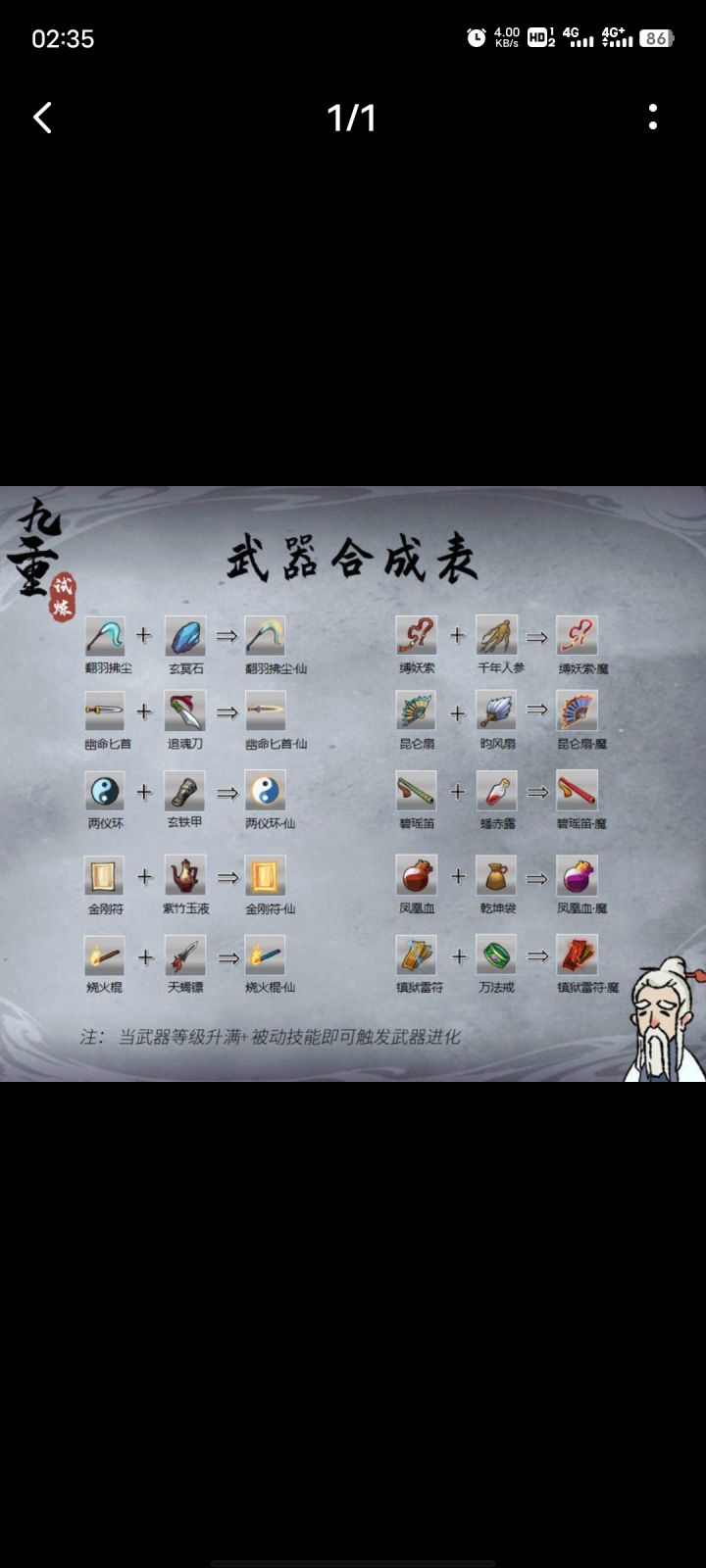 该攻略为本小白仅入坑几天所作,起因是我不看攻略蒙头硬打感受到了深深的蒙圈有不足之处或值得讨论还请大佬评论看合成攻略!看合成攻略!看合成攻略!不看合成攻略蒙头硬打只会被揍得六亲不认!推荐超武:扇子,符咒(金刚符)扇子永远的神,超武直接挂机等收经验,超武符咒出了横冲直撞,但是有看到大佬说后期符咒有些乏力可用超武:两仪,火棍,血瓶,雷符超两仪伤害很高,但是数量只有两个,清怪效率降低,属于不太推