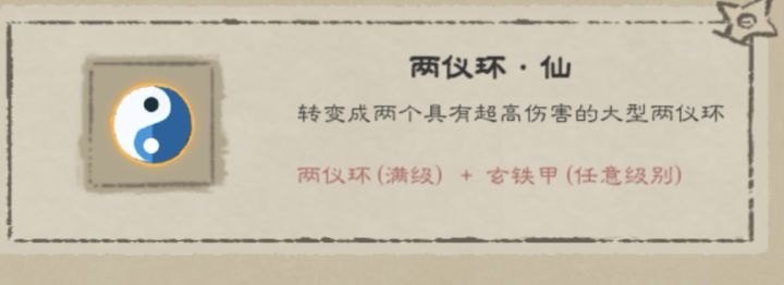 拂尘——比想象中更有用伤害能力一般,优点是可以自动处理最靠近的怪,而且超武合成材料是CD石这种万金油的东西,属于挂机时候可以点出来用用但也不至于特意去找。但是我在打高层的时候无意间拿过拂尘以后发现,反正都是伤害不够,那么自动索敌的特性能给我的走位带来很多空间,比想象中要有用一点。两仪环——什么都略懂一点攻守兼备的法宝,伤害也还行,保命也还行,清场开路也还行,这样在低层的表现就挺好的,而且合