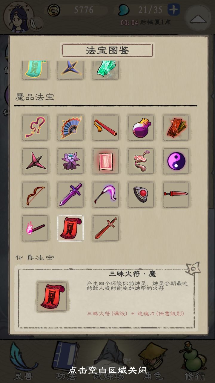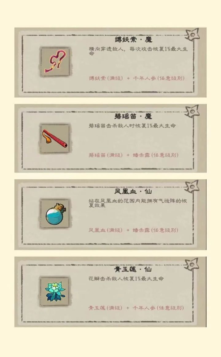 无尽画卷出来几天了,总结一下玩法。一、法宝1.初始攻击法宝推荐幽命匕首、缚妖索 前期好操作,后期转缚妖索·魔和幽命匕首·魔都很好用。2.其它攻击法宝推荐:龙牙弓·仙、幻夜蒺藜·仙、三味火符·仙,昆仑扇·魔、镇狱雷符·魔、紫璃扣·魔、诛仙剑·魔、青玉莲·魔。吸血功能非常重要,但是青玉莲·仙回血能力太差,不建议使用,直接出缚妖索·魔比较好。考虑攻击距离、伤害和搭配问题,金刚符、翻羽拂尘、碧瑶