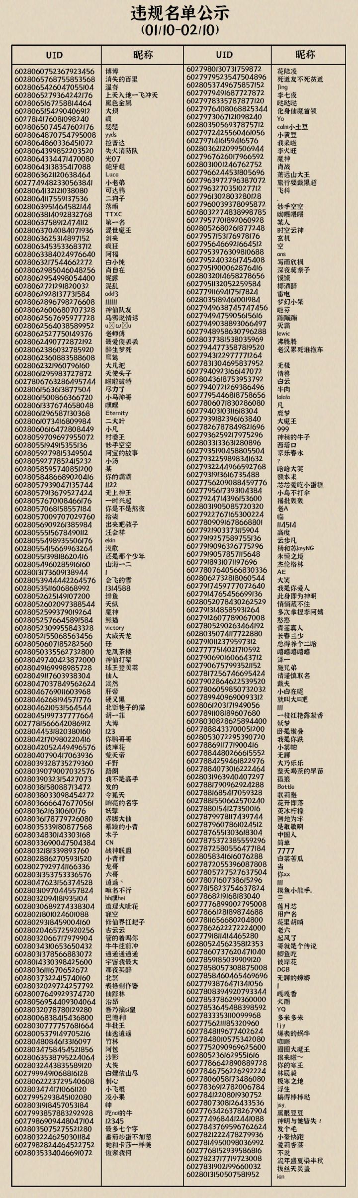 九重试炼用户异常行为及数据异常处理公告01/02-01/08