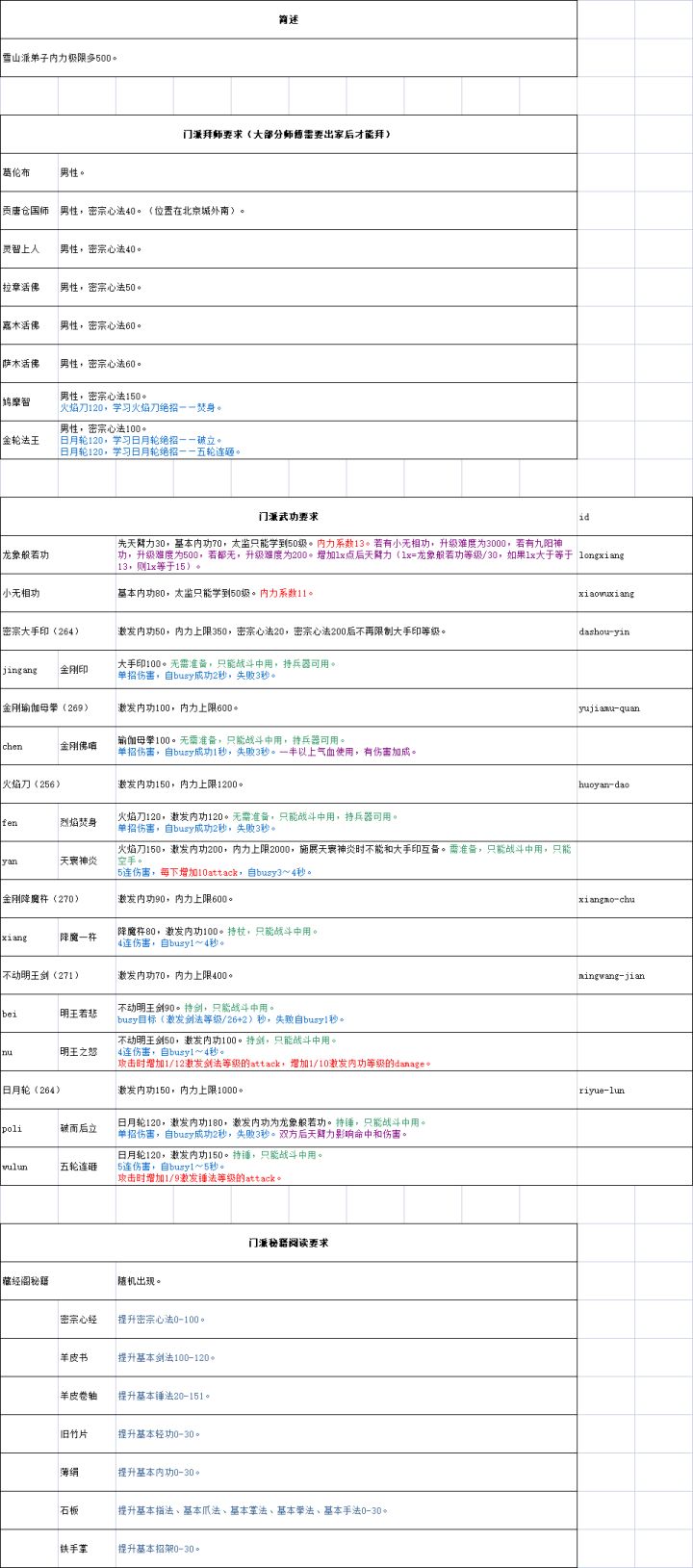 最后修改时间:2022-05-22 22:27:29人物拜师要求门派特殊体系:门派书籍介绍:门派武学介绍: