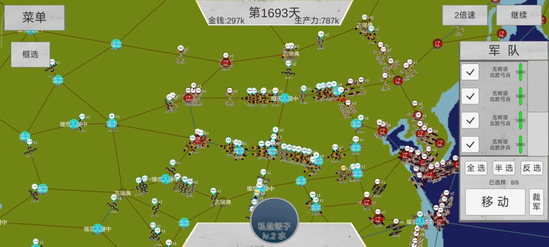 又搞了波古雅典,这游戏就玛雅跟辽最强,辽一开始就贼猛没发搞,想赢只能先搞掉玛雅,玛雅发育起来就没法打了,一定得保护维京,不然靠维京侵略也不好打,三个盟友都起来就很简单了;打辽国先把三级地占了改成低级地他就跑不起来了,随便拿捏。😎😎😎