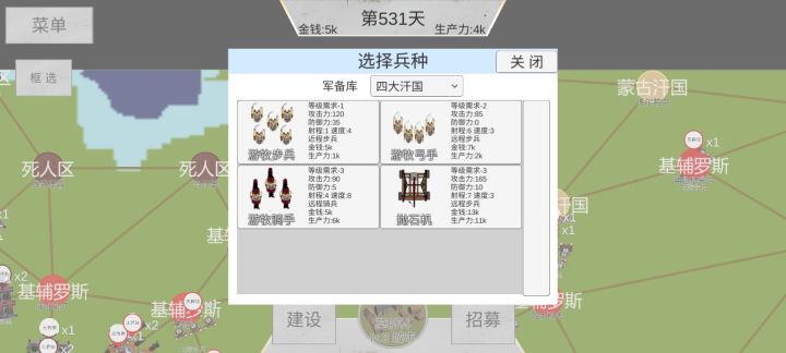 这是这是我目前玩过最难的一张图了,新手勿扰,说一下自己的游玩思路:剑阁等级清零,直接放弃掉所有兵力,集中在长安,他失守以后会给一波资源,试过好几在右边城里不放兵的情况下,吐番会分兵,下方的南诏很能活,活个300天没啥问题,所以下面不用守,那10对兵+两个武将可以在嫖完资源以后上来打剑阁,吐番都武将在路上就能给他灭掉,稍微拉扯一下可以无伤灭掉,然后凭借两个武将的优势尽情扩张燕没啥好说的,直沽寨等