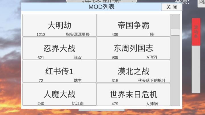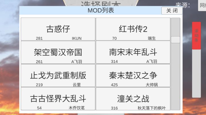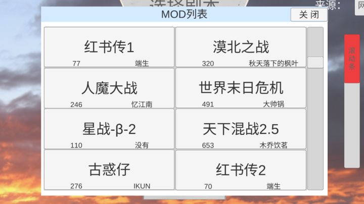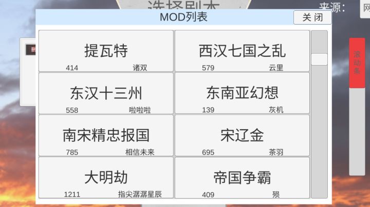 1.西汉七国之乱作者:云里尺寸 中中国图,城少+散,无特殊兵2.东汉十三州作者:啦啦啦尺寸 中架空图,有穿越3.东南亚幻想作者:灰机尺寸 小东南亚图,现代兵种4.南宋精忠报国作者:相信未来尺寸 中中国图5.宋辽金作者:茶羽尺寸 中中国图