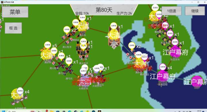这是这是我目前玩过最难的一张图了,新手勿扰,说一下自己的游玩思路:剑阁等级清零,直接放弃掉所有兵力,集中在长安,他失守以后会给一波资源,试过好几在右边城里不放兵的情况下,吐番会分兵,下方的南诏很能活,活个300天没啥问题,所以下面不用守,那10对兵+两个武将可以在嫖完资源以后上来打剑阁,吐番都武将在路上就能给他灭掉,稍微拉扯一下可以无伤灭掉,然后凭借两个武将的优势尽情扩张燕没啥好说的,直沽寨等