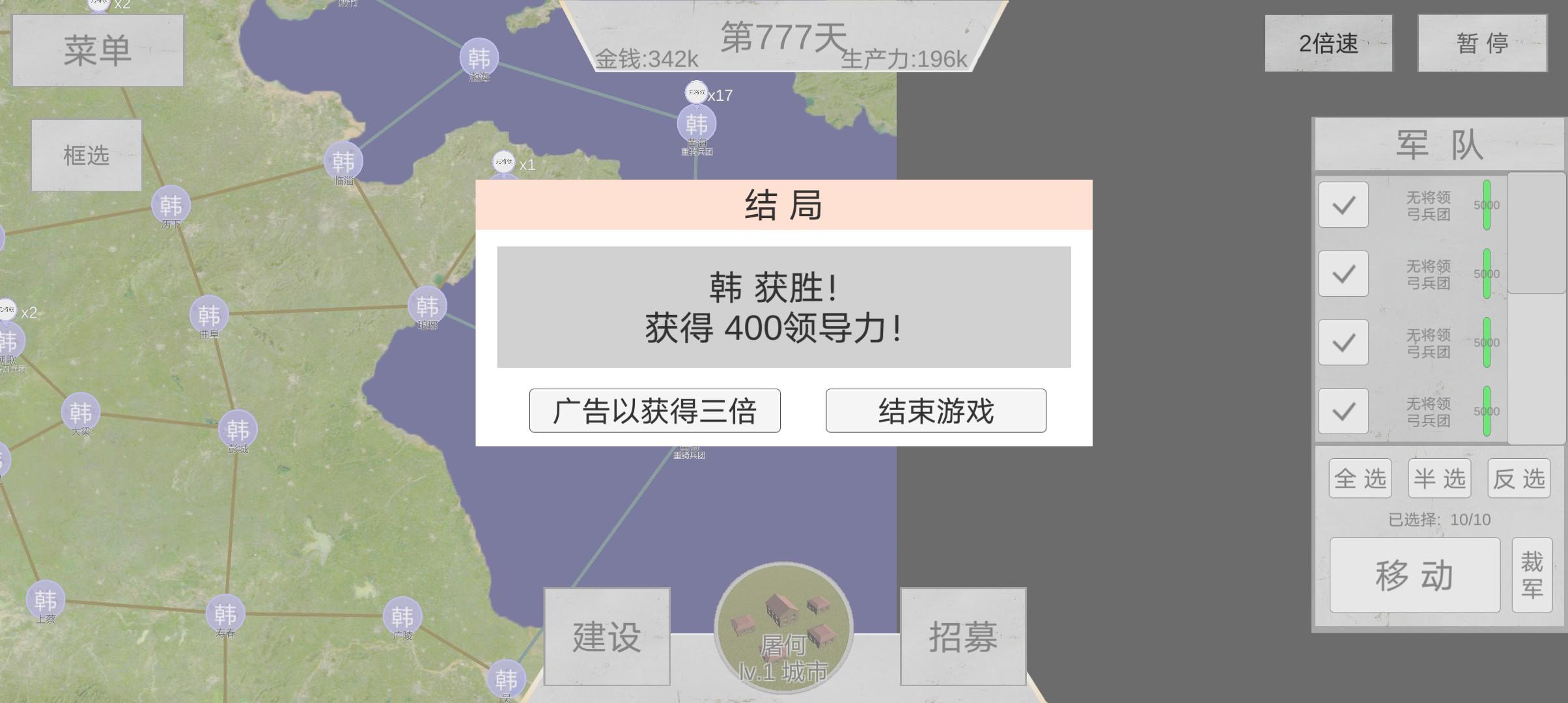 1.3版本战国时代韩国不偷家无将领默认兵种541天速通(附视频)
