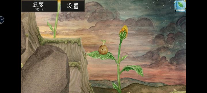 #发现好游戏 画风唯美治愈,十几分钟左右就玩完了。在探索的旅途中种子破裂后会变成各种植物(荷叶,郁金香🌷,向日葵🌻,叶子,小麦,还有枫树)。