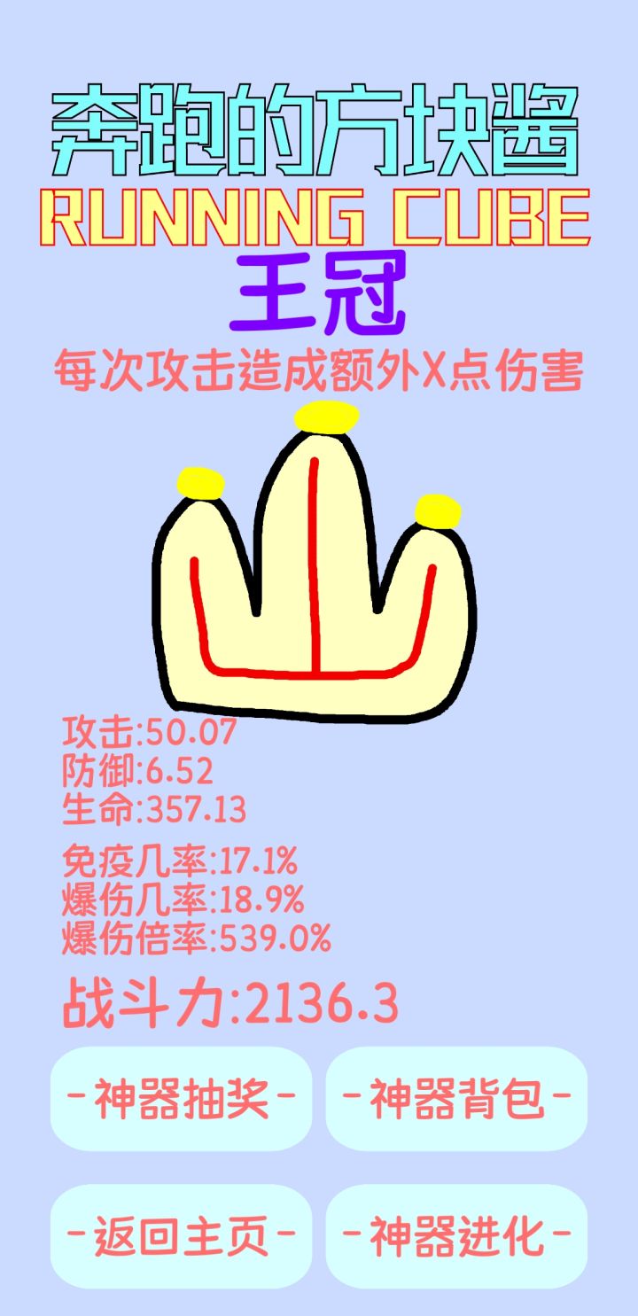 V2.0.1:彻底更新了游戏界面,重置了UI配色最高等级设置为100级,超过的部分会转化为抽奖次数详见等级转化抽奖次数的表格调低了神器升星所需要的数量进一步优化了积分模式下的数据显示增加了4个脚印和6个小圈(六一活动预热~)