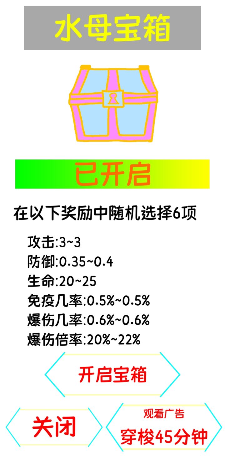 通关之后可以获得水母宝箱!不用等待任何时间,可以直接开启哦~另外,通过激活码也可以获得大量水母宝箱,去激活码的帖子里找找吧