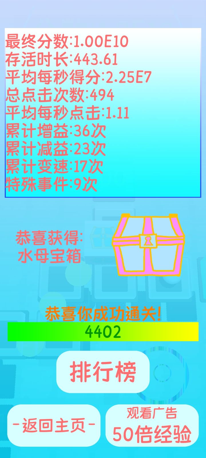 V1.0.5:降低了每秒得分加倍的浮动范围,避免游戏过于简单调整了神器界面的UI增加了两种有特殊效果的神器增加了神器升星功能增加了神器更换功能增加了神器抽奖功能//感谢@玄四。:准备加入无尽模式,同时完善特殊事件将屠神之战中的部分英文替换为了中文减小了屠神之战中神族士兵之间的间距,加大了游戏难度