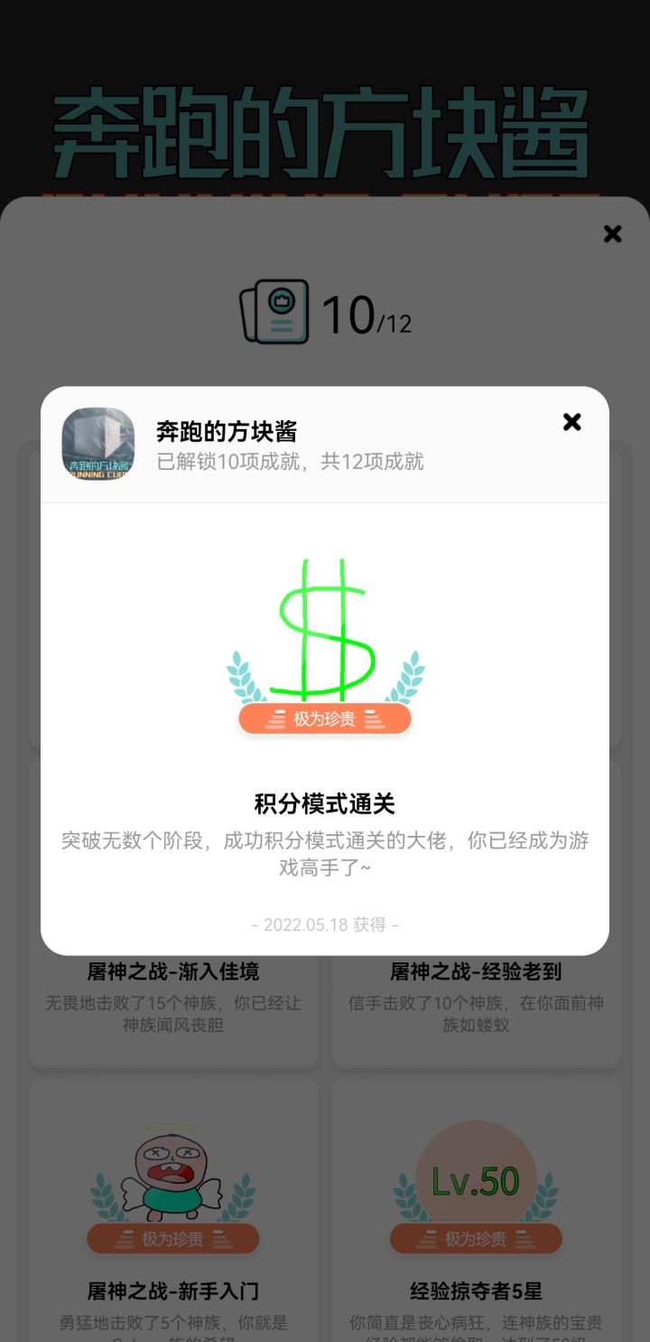 ■成就相关正常看广告通关屠神即可全成就无隐藏,但是有很坑的限时活动副本的成就(既然设置成就了好歹返场一下啊),我是在成就党群友[风]的帮助下获取到旧版apk才达成全成就。