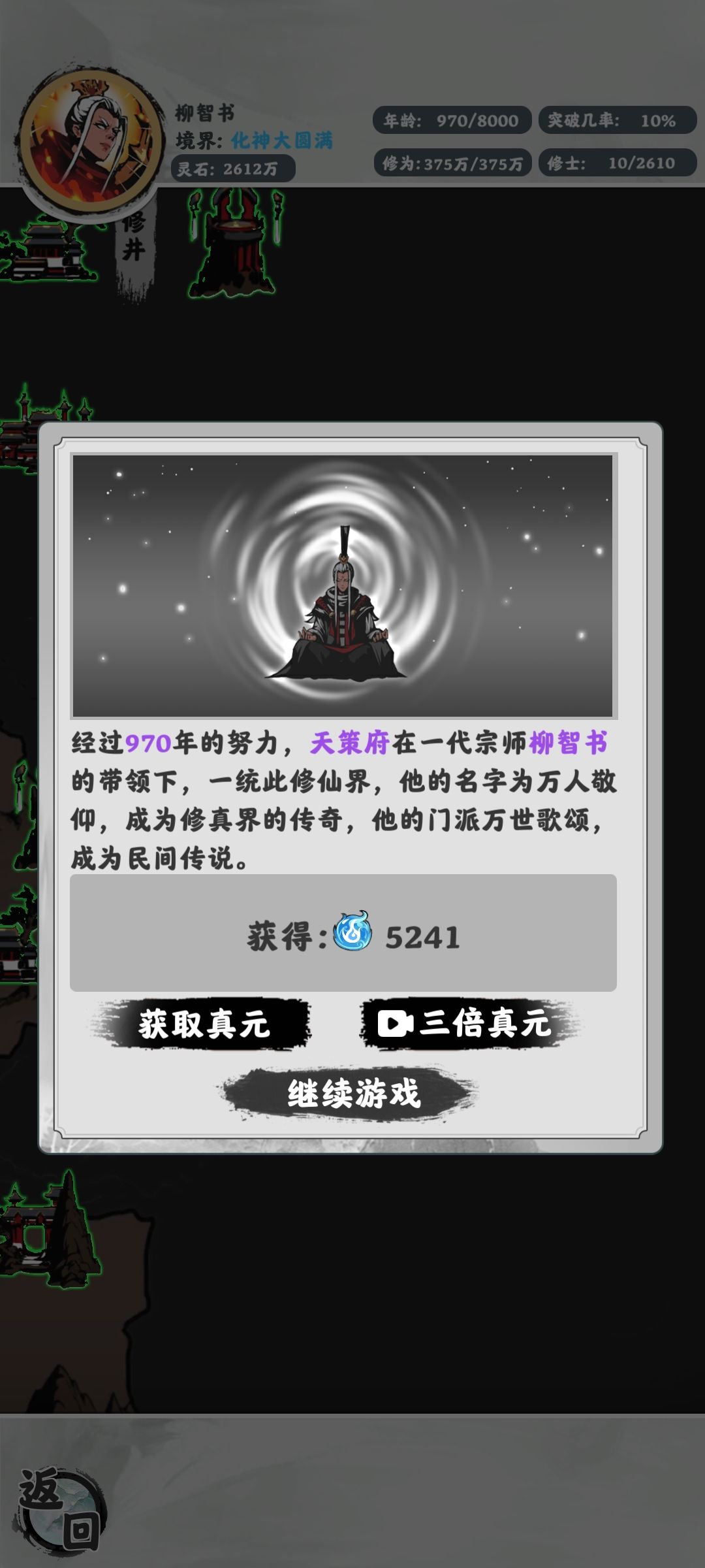 10-这时候到化神 我们双灵根金丹赚钱是绝对跟得上消耗 攒点钱拉去炼药先磕两个化神大圆满 (先磕弟子到化神圆满过 再磕掌门)穿上装备刷三阶装备去古丈原刷四阶装备 等四阶装备然后跟新装备就行了