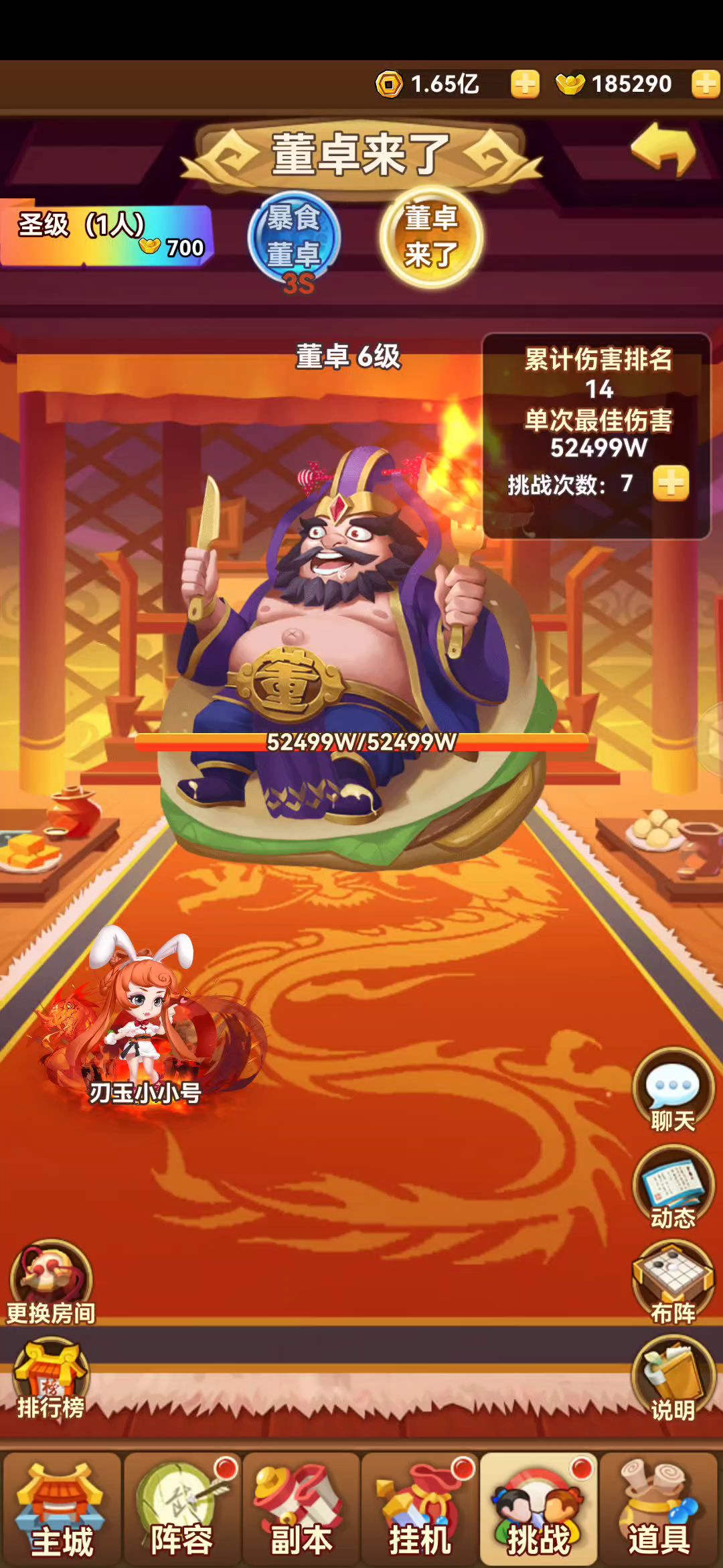 参与赛道A—董卓来了 S692 肥胖虎 主c6号位置 加攻5号 4号位放加怒或者攻击 主c大概350万左右毕业圣经董卓。浅浅混个参与奖