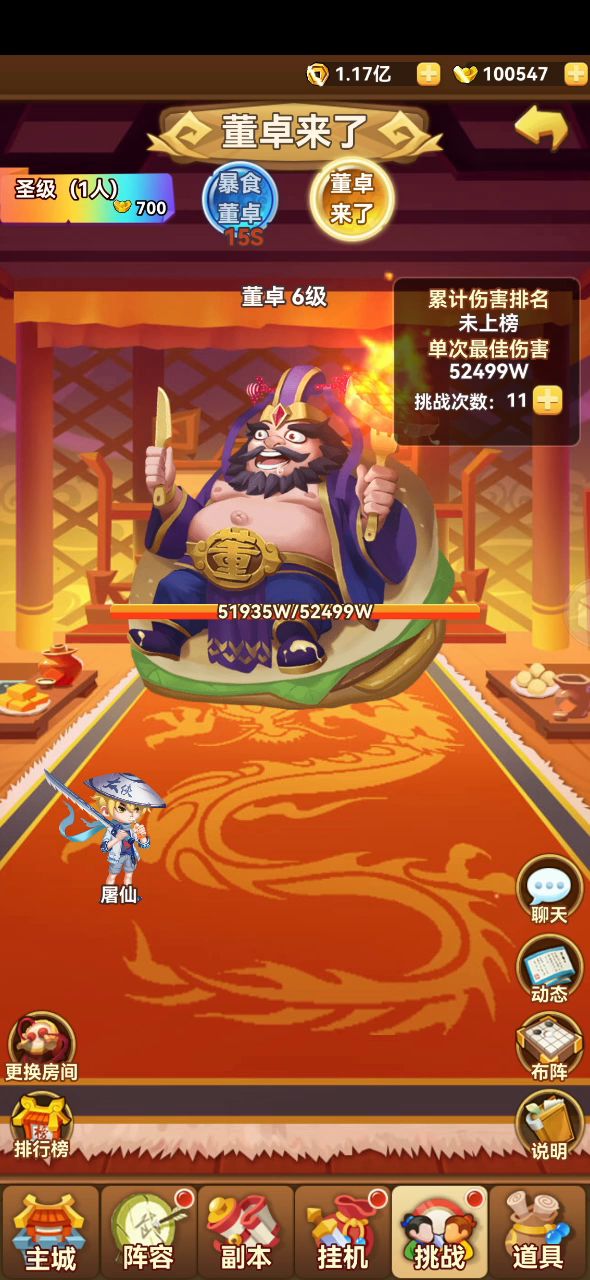 S730 剑道长歌 因为董卓每次攻击必秒一人,所以主C需要在6号位,我是魏国曹操蔡文姬手贱分解了,所以只能靠硬战力怼过去。有这两个的话会比较容易过。