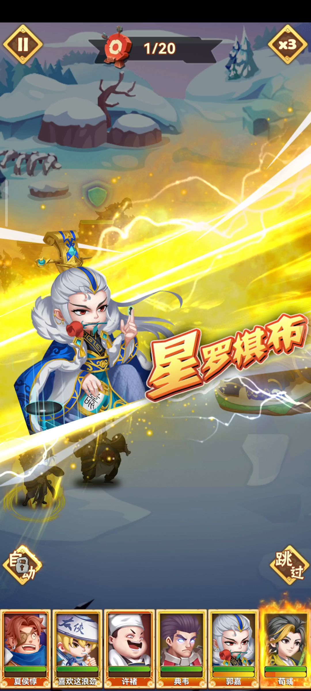 打这个战力需要比较高 然后主养一个荀彧 建议是放到二号位 一号位可能会给降调怒气 前期荀彧战力不够基本上三星很难
