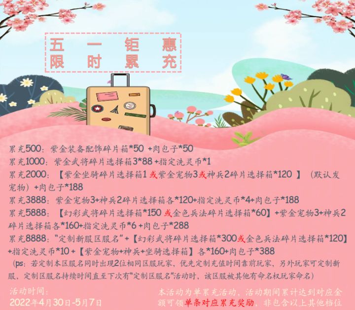 五一小长假即将来临,不知道主公们有什么规划了嘛,反正今年小编只能看你们朋友圈5日游了(我们不放假),名将之路上线受到广大玩家欢迎服务器火爆,我们《名将之路》工作组要奋战在第一线为我们的各位主公们服务啦。提前祝我们出外游玩的主公一切顺利,要注意好个人安全哦,出门游玩记得带口罩哦。《名将之路》为TapTap小主们带来了节日福利哦【福利一】节日礼包【活动范围】全服【活动时间】2022年5月1-3