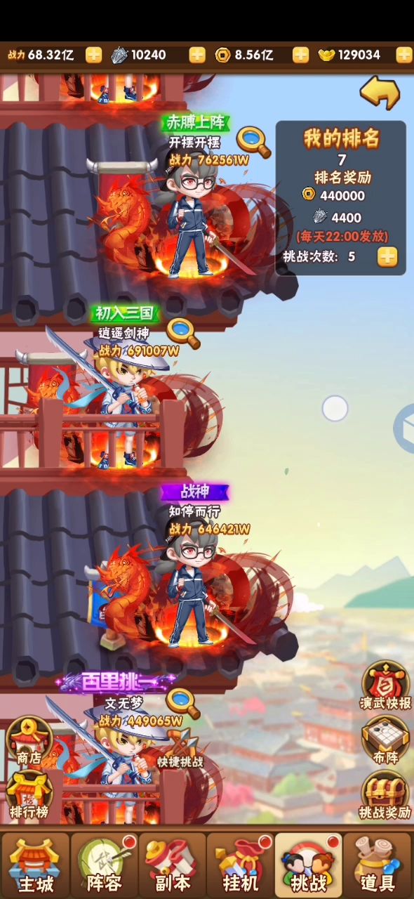 获胜原因:每个武将都有强度,快速清理掉对面弱武将然后集合打boss